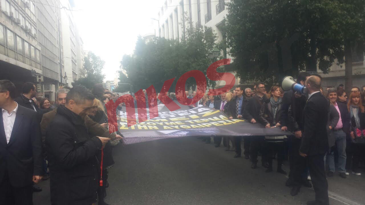 Η φαντασία των διαδηλωτών στη σημερινή απεργιακή κινητοποίηση, είναι εμφανής, όπως φαίνεται και στο στιγμιότυπο που κατέγραψε ο φωτογραφικός φακός και δείχνει τις ντουντούκες να φοράνε… γραβάτες!