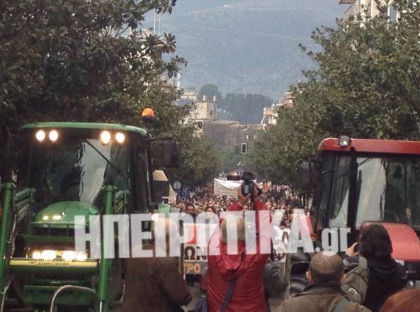 Μεγαλειώδης η συγκέντρωση και στο κέντρο των Ιωαννίνων σύμφωνα με το ipeirotika.gr. Στους δρόμους βρίσκονται και τρακτέρ από την πλευρά των αγροτών.