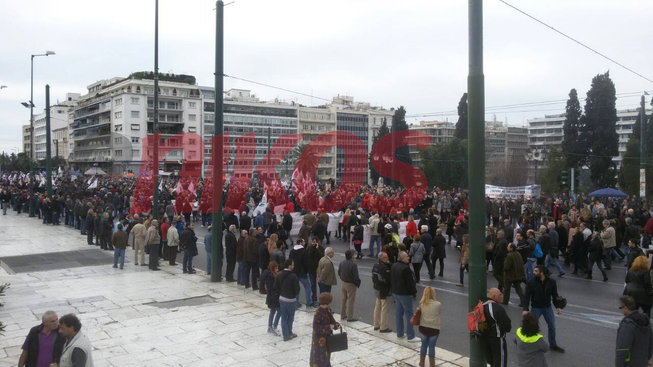 Μεγάλη είναι η συμμετοχή του κόσμου στις απεργιακές κινητοποιήσεις για το ασφαλιστικό που προωθεί η κυβέρνηση. Όπως φαίνεται και στο βίντεο αυτή την ώρα, εργαζόμενοι του ιδιωτικού τομέα και του δημοσίου βρίσκονται μπροστά από τη βουλή, ενώ όπως μετέδωσε το ΣΚΑΪ η ουρά της πορείας του ΠΑΜΕ φτάνει μέχρι την Ομόνοια.