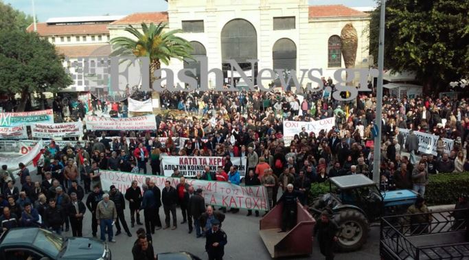 Μεγαλειώδεις οι συγκεντρώσεις στη Μυτιλήνη. Eργαζόμενοι και εκπρόσωποι επιστημονικών φορέων και αγρότες συγκεντρώθηκαν στα κεντρικά λύκεια της πόλης, στην πλατεία Σαπφούς και το ΙΚΑ. Σύμφωνα με το lesvospost.gr αγρότες έριξαν γάλα στην είσοδο σούπερ μάρκετ.