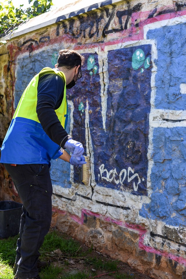 Παράλληλα, τα καλόγουστα γκράφιτι, εικαστικής αξίας σε όλο το μήκος του πέτρινου τοίχου προστατεύθηκαν με ειδικά καλυπτικά, που δρουν ανασταλτικά σε κάθε προσπάθεια βανδαλισμού. Αυτή, άλλωστε, είναι η γενική αρχή που ακολουθεί ο Δήμος Αθηναίων για αυτή τη μορφή σύγχρονης τέχνης.