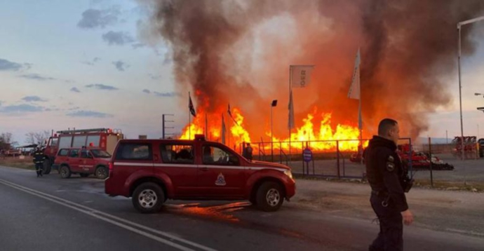 Σύμφωνα με τις πρώτες πληροφορίες η φωτιά ξέσπασε σε σημείο όπου υπήρχαν αποθηκευμένες παλέτες.