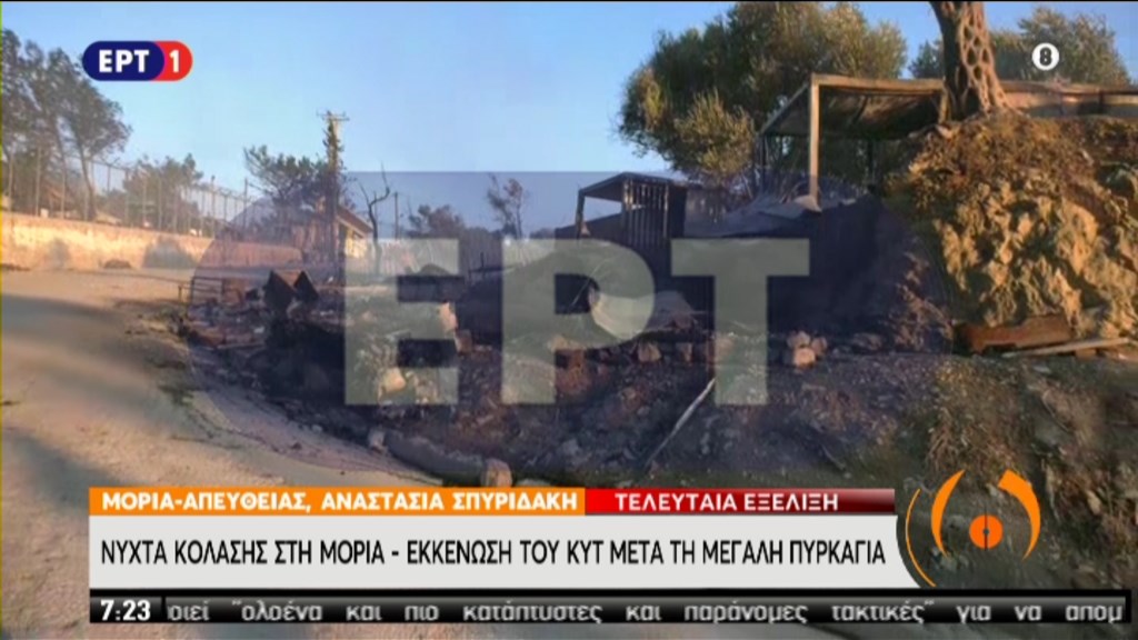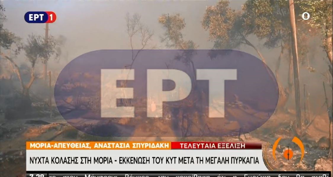 Στα πλάνα που μετέδωσε η ΕΡΤ1, η εικόνα το πρωί μοιάζει αποκαρδιωτική, αφού οι καταστροφές είναι μεγάλες, ενώ οχήματα της Πυροσβεστικής και ελικόπτερα εξακολουθούν να επιχειρούν στην περιοχή. Υπάρχουν ενεργές εστίες μέσα στον καταυλισμό, καθώς κοντέινερ συνεχίζουν να καίγονται. Επίσης, ο ελαιώνας όπου υπήρχαν σκηνές και διέμεναν οι πρόσφυγες, έχει γίνει στάχτη.