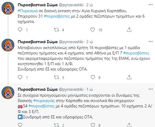 Πολλές από τις πυροσβεστικές δυνάμεις μεταφέρθηκαν στο νησί από την Κρήτη και την Αθήνα.