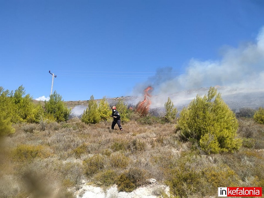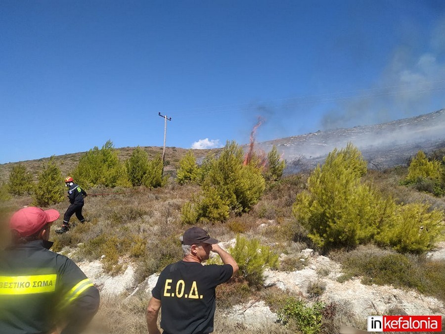 Φωτιά βρίσκεται σε εξέλιξη σε δασική έκταση στην περιοχή Χελμάτα, Κεφαλονιάς. Για την επιχείρηση κατάσβεσης της πυρκαγιάς έχουν κινητοποιηθεί 28 πυροσβέστες, μια ομάδα αερομεταφερόμενου πεζοπόρου τμήματος και επτά οχήματα. Επίσης, από αέρος επιχειρούν τρία αεροσκάφη και ένα ελικόπτερο. Συνδράμουν εθελοντές και υδροφόρες ΟΤΑ. Στην περιοχή πνέουν πολύ ισχυροί άνεμοι.