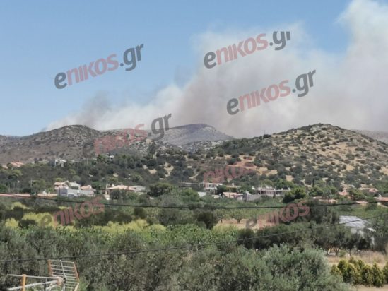 Σε πλήρη εξέλιξη βρίσκεται η μεγάλη φωτιά που ξέσπασε νωρίτερα το μεσημέρι της Κυριακής (30/06), στην Κερατέα, στον οικισμό Πλάκα.