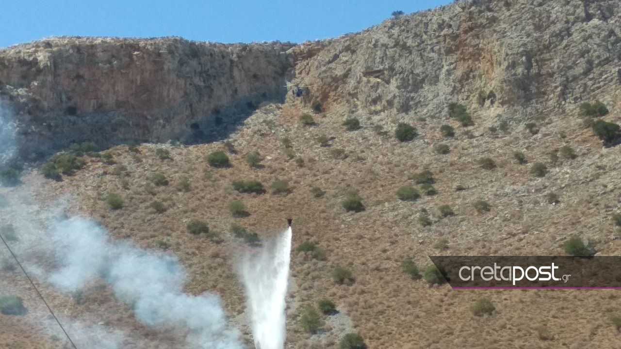 Λόγω του δύσβατου της περιοχής τις προσπάθειες κατάσβεσης της πυρκαγιάς συνδράμει από αέρος το ελικόπτερο που πραγματοποιεί ρίψης νερού.