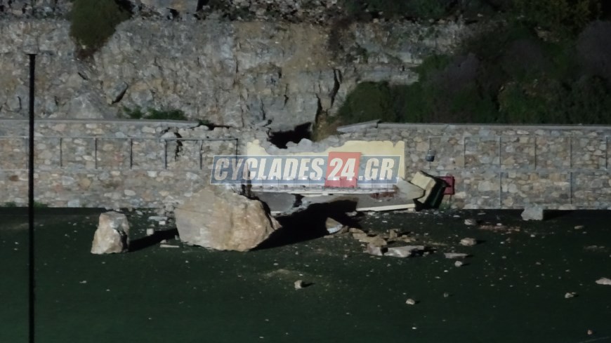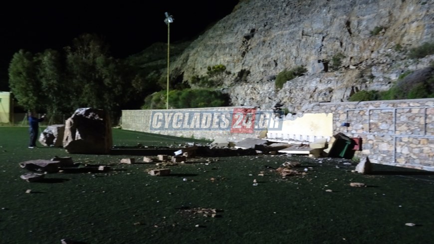 Κατολίσθηση βράχων σημειώθηκε το βράδυ της Τρίτης στο ποδοσφαιρικό γήπεδο της Άνω Σύρου, τρομάζοντας τους πάντες.