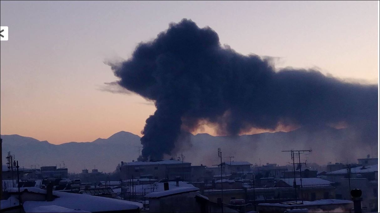 Ο μαύρος καπνός σκέπασε ολόκληρη τη πόλη.