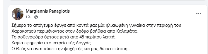 Μεσσηνία: 89χρονη άφησε την τελευταία της πνοή αβοήθητη – Περίμενε 45 λεπτά το ασθενοφόρο