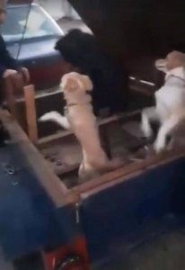 Σύμφωνα με την κα. Γιαννακοπούλου, ο οδηγός σέρνει το τρέιλερ σε ένα μπλε σκούρο επιβατικό και μέσα σε αυτό κλείνει τα τρία δεμένα σκυλάκια, τα οποία παίρνει μαζί του σε όποιο ταξίδι πάει.