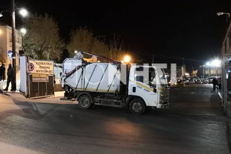 Τα απορριμματοφόρα του δήμου Δυτικής Λέσβου αποκλείουν και το λιμάνι Σιγρίου, ώστε να αποτρέψουν την άφιξη των ΜΑΤ.