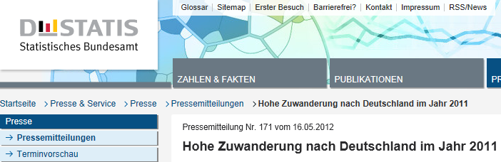 “Αυξήθηκε ιδιαίτερα η μετανάστευση που προέρχεται από την Ευρωπαϊκή Ένωση” και “ιδιαίτερα από χώρες που έχουν πληγεί σκληρά από τη δημοσιονομική και οικονομική κρίση”, ανακοίνωσε η γερμανική ομοσπονδιακή υπηρεσία στατιστικών Destatis.