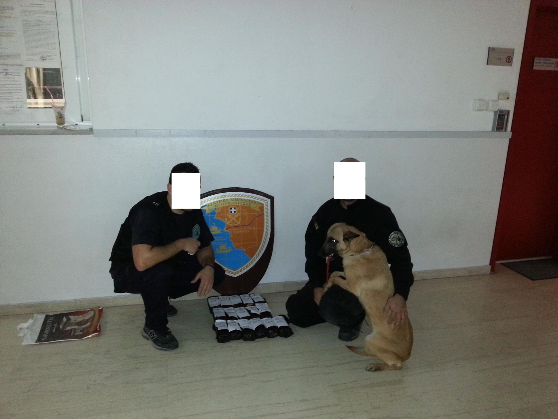 Σε έλεγχο που διενήργησαν οι άνδρες του Λιμενικού Σώματος και κατόπιν ένδειξης αστυνομικού σκύλου Λ.Σ-ΕΛ.ΑΚΤ., βρέθηκαν επιμελώς κρυμμένα εντός του αυτοκινήτου του 33χρονου αλλοδαπού δέκα έξι πακέτα, τα οποία περιείχαν ναρκωτική ουσία, πιθανόν ηρωίνη, συνολικού μικτού βάρους οκτώ κιλών και τριακοσίων τριάντα γραμμαρίων.