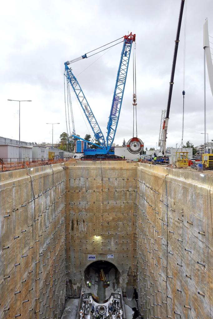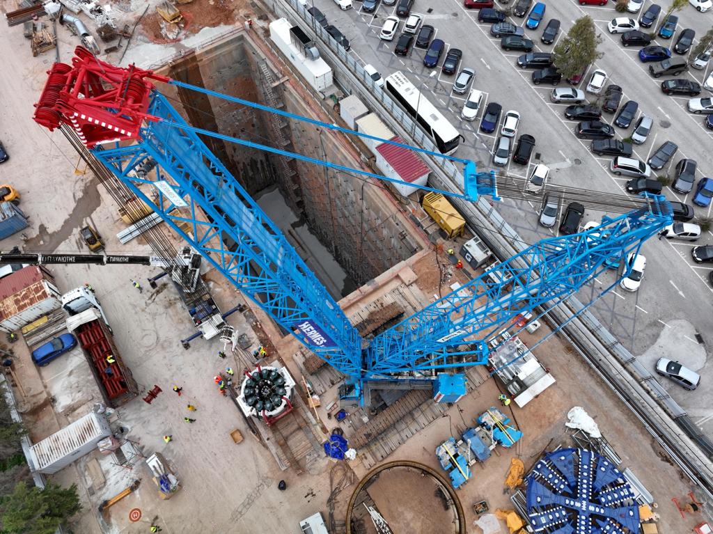 Στο φρέαρ της οδού Μεσογείων, εκεί που μελλοντικά θα κατασκευαστεί ο δεύτερος Σταθμός Κατεχάκη που θα περιλαμβάνεται στην επέκταση της νέας γραμμής προς τα βόρεια και σε βάθος 36 περίπου μέτρων συναρμολογείται ο πρώτος από τους δύο μετροπόντικες που σε λίγες εβδομάδες θα ξεκινήσει την υπόγεια εργασία του στα μυστικά της Αττικής γης.