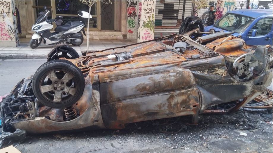 Όπως φαίνεται σε σημερινή φωτογραφία, το αυτοκίνητο, το οποίο αναποδογύρισαν και το έκαψαν ολοσχερώς οι νεαροί κουκουλοφόροι το βράδυ της “μάχης”,παραμένει στη…θέση του. Και δεν έφτανε αυτό, ο Δήμος Αθηναίων έχει βάλει και το ειδικό αυτοκόλλητο σήμα που δείχνει ότι το αυτοκίνητο έχει εγκαταληφθεί.
