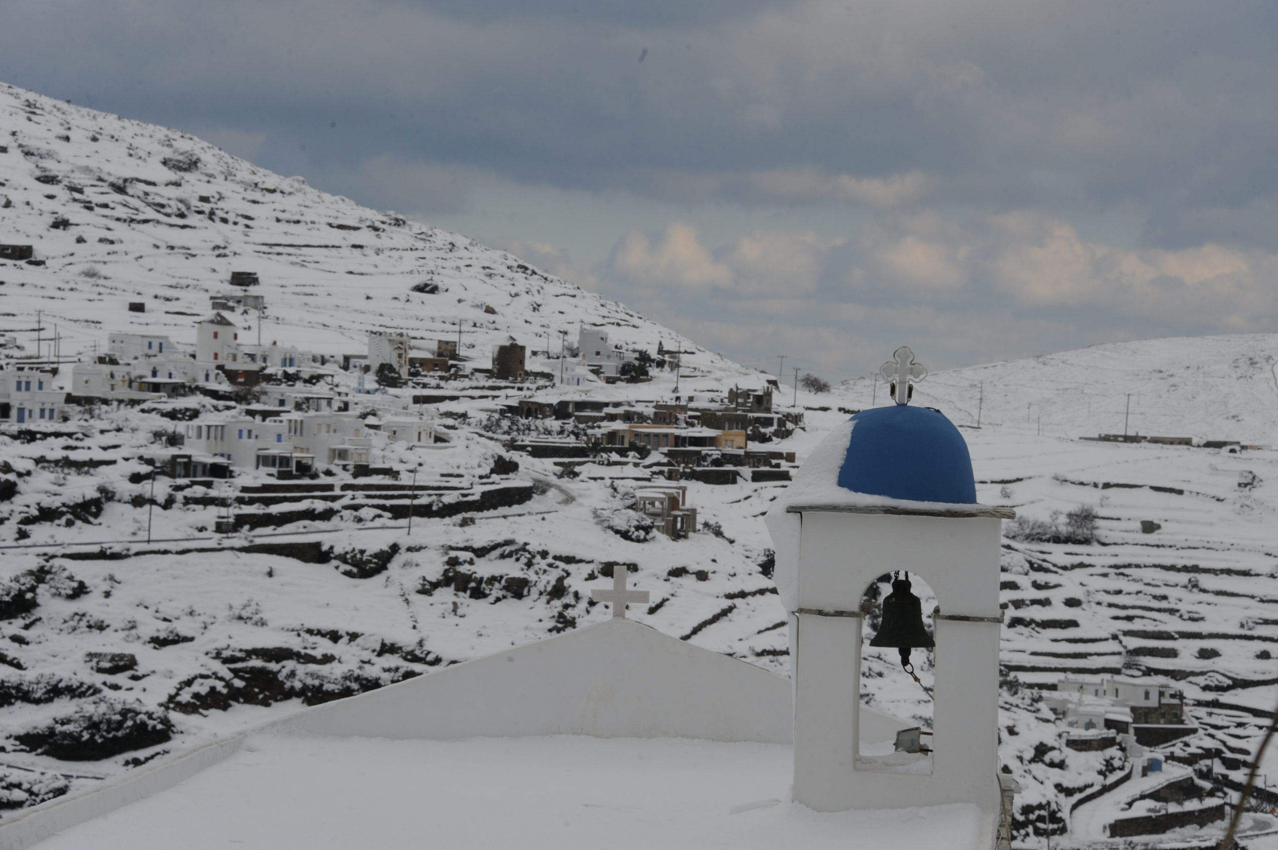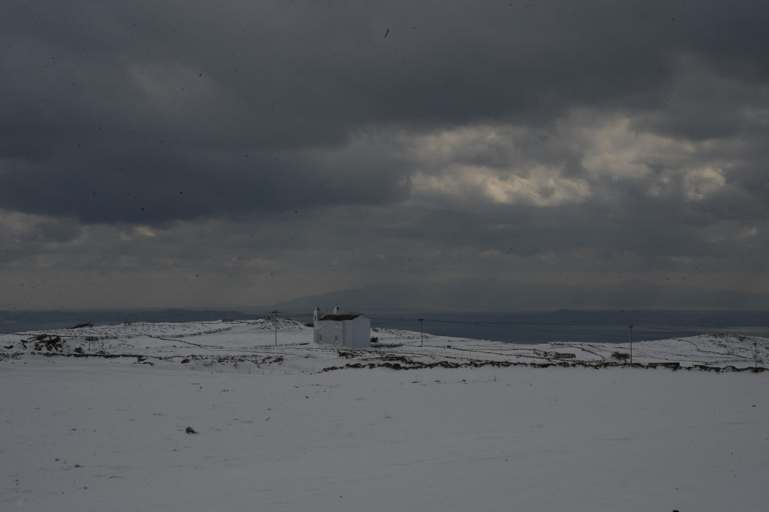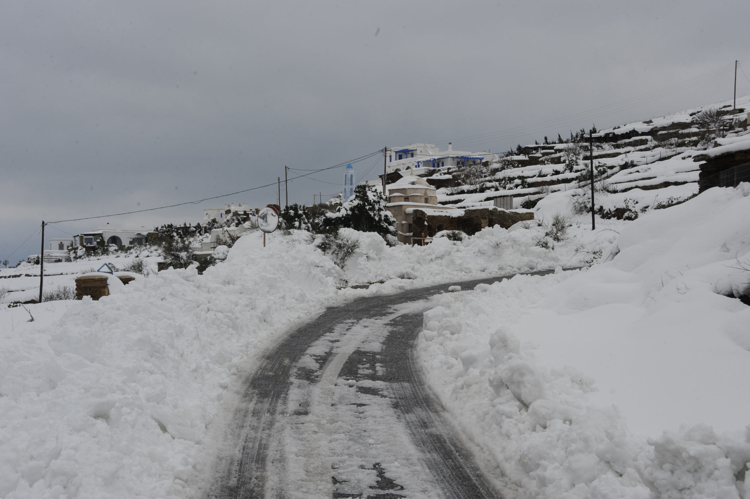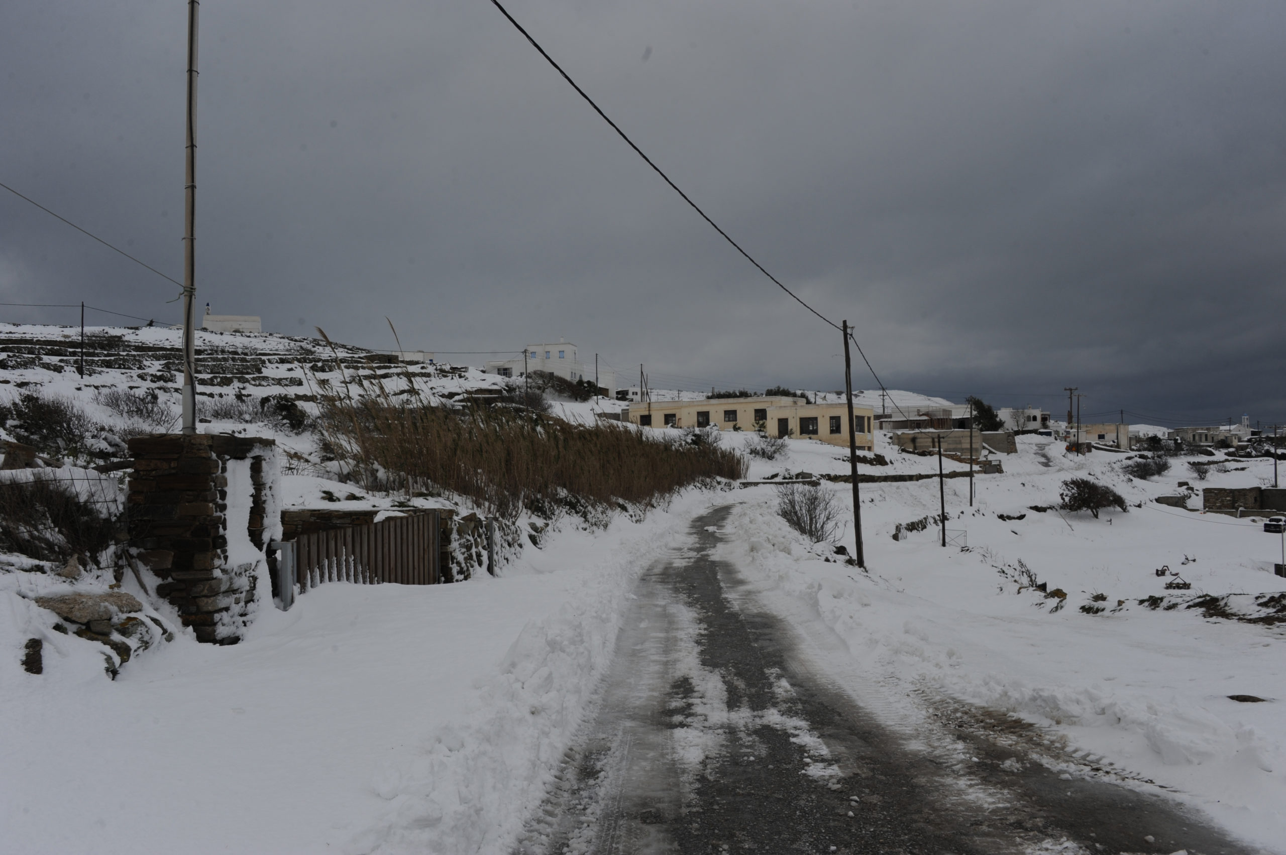 Το νέο κύμα κακοκαιρίας έπληξε και την Τήνο, με χιόνια τόσο στα ορεινά, όσο και κοντά στην θάλασσα.