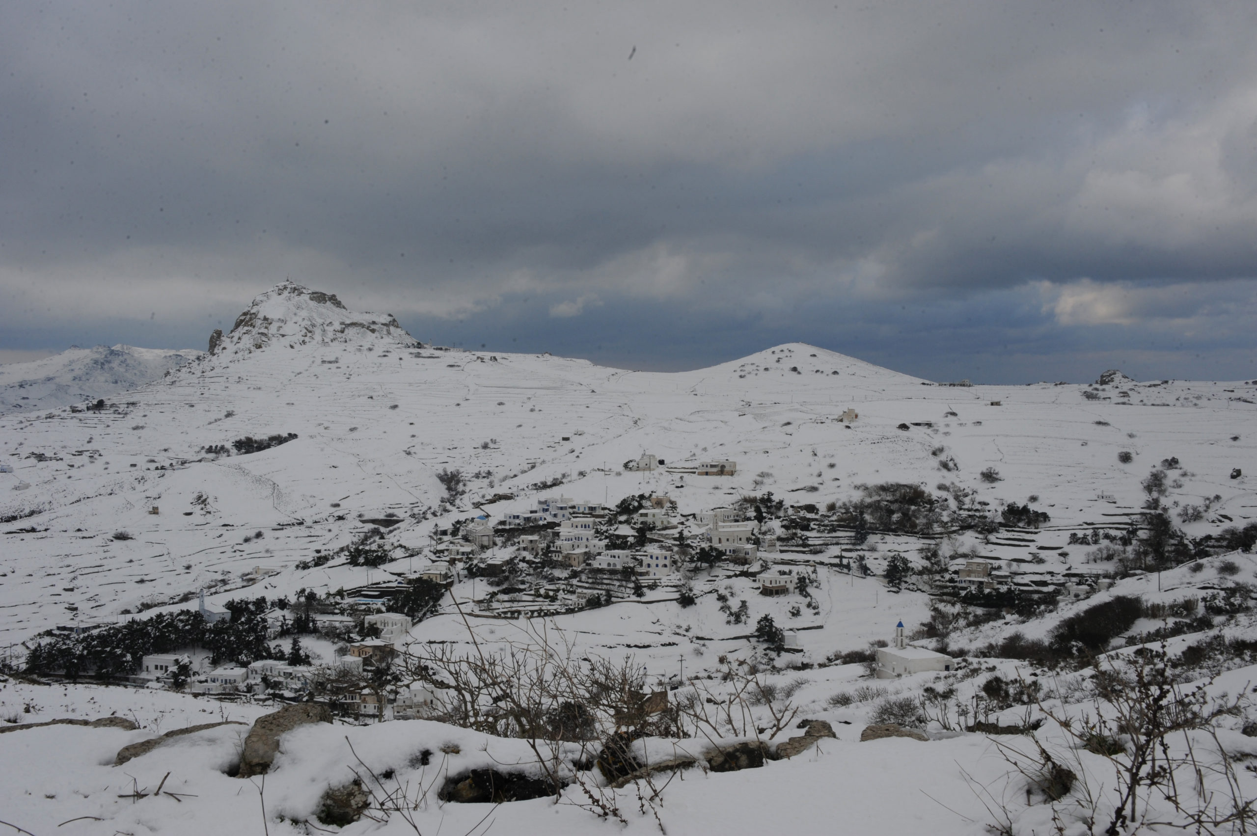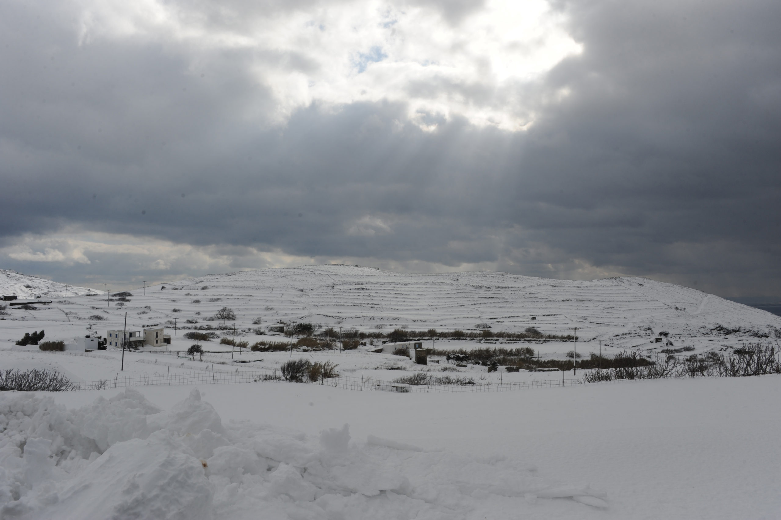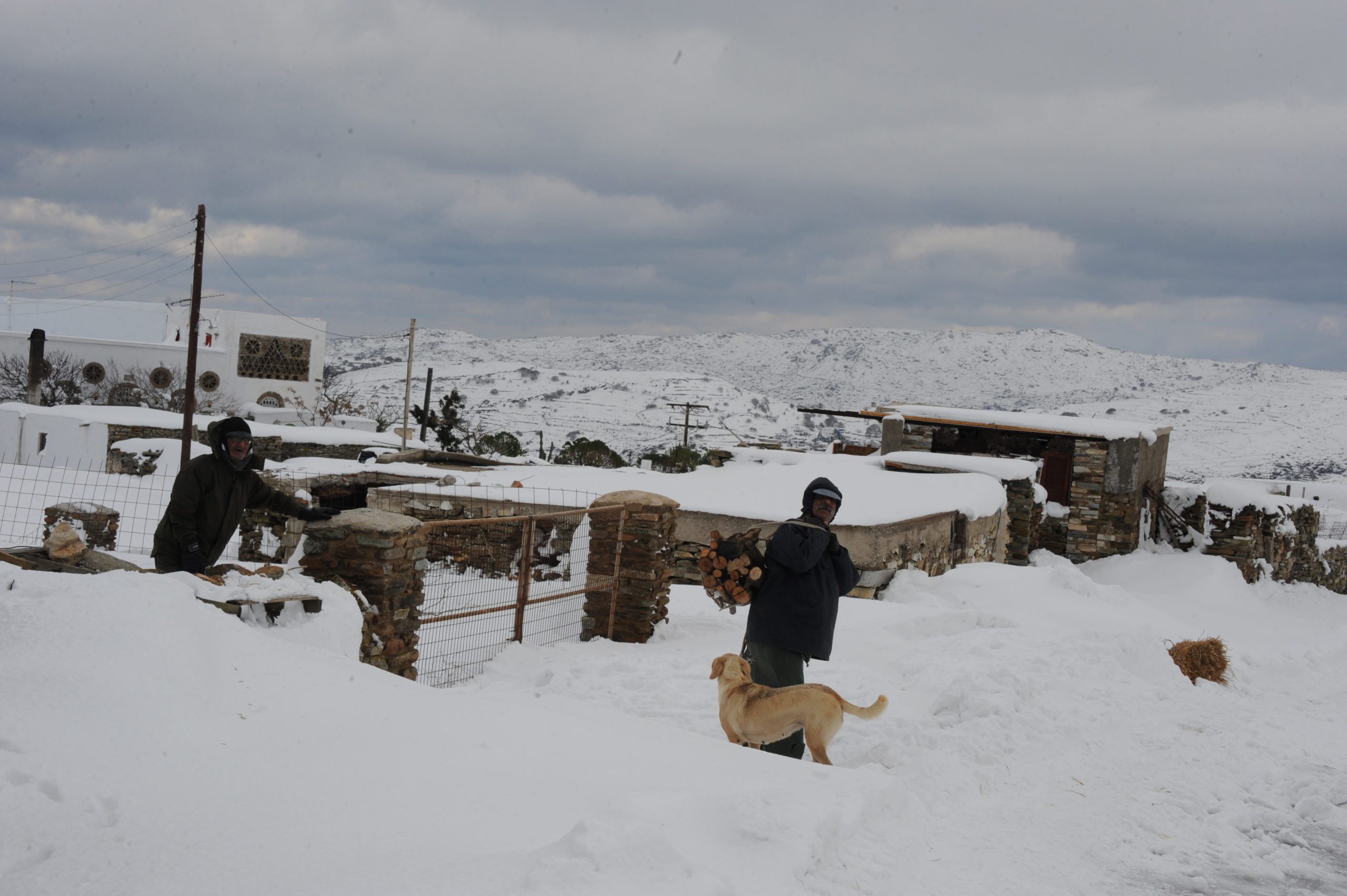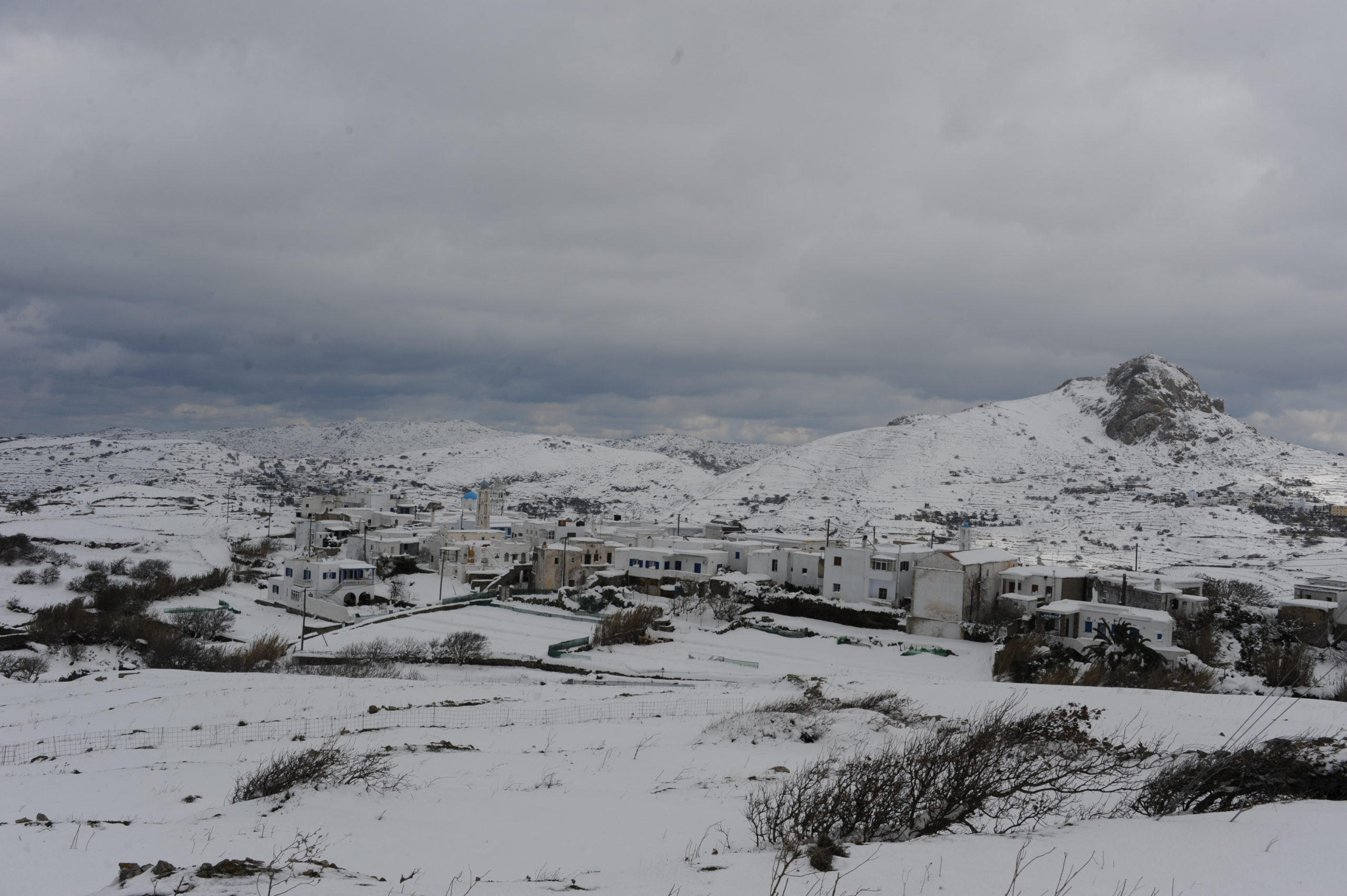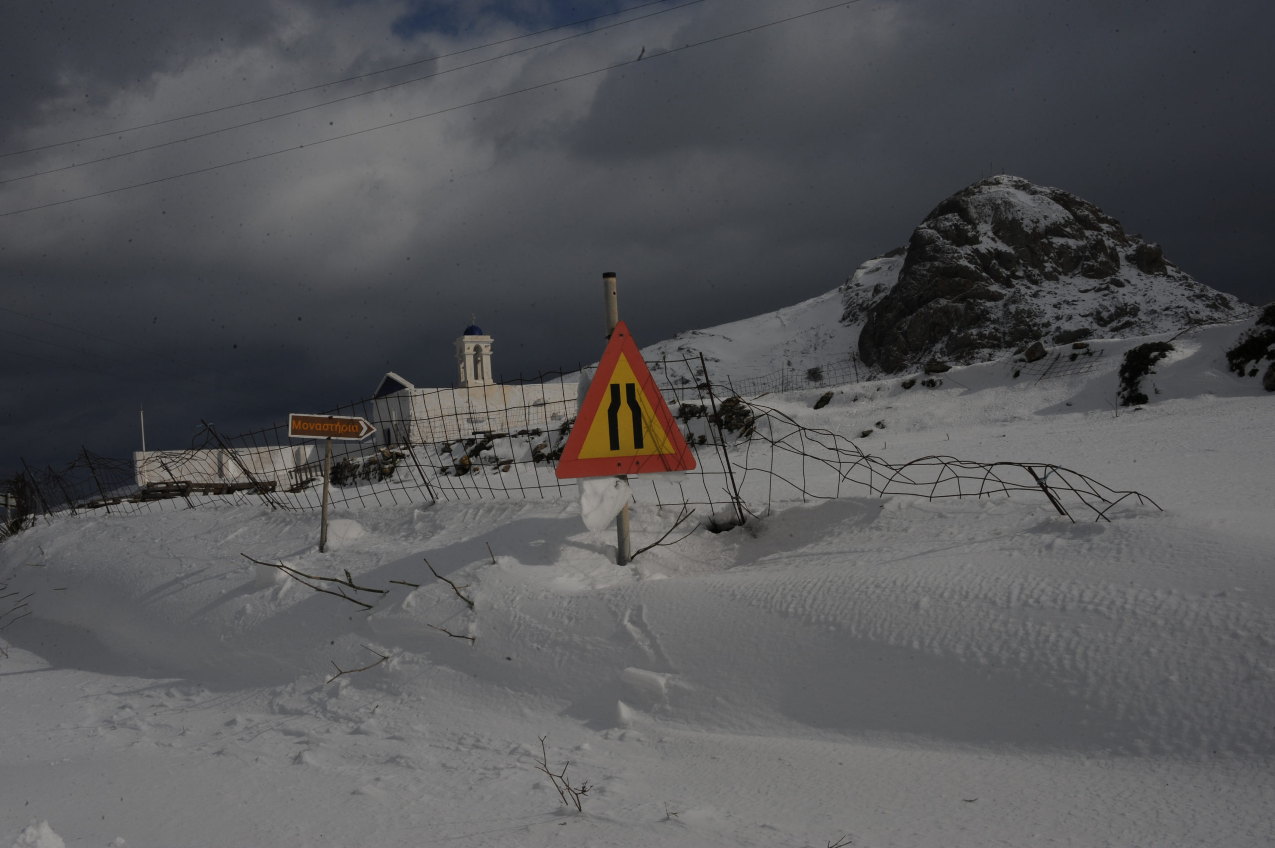 Το νέο κύμα κακοκαιρίας έπληξε και την Τήνο, με χιόνια τόσο στα ορεινά, όσο και κοντά στην θάλασσα.