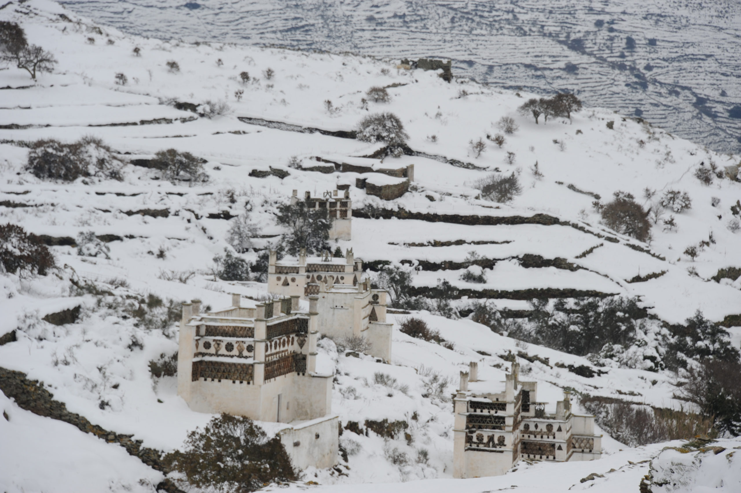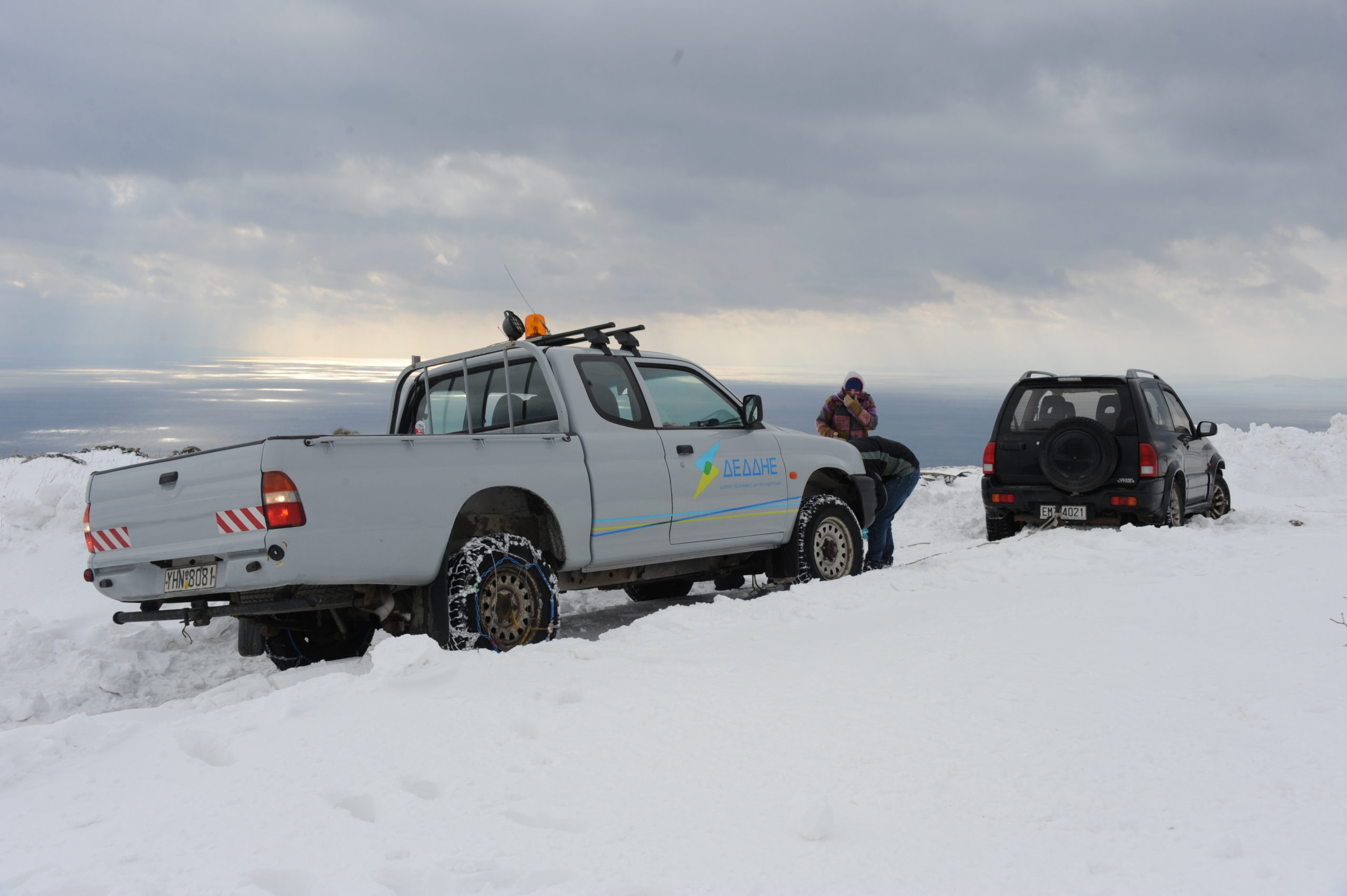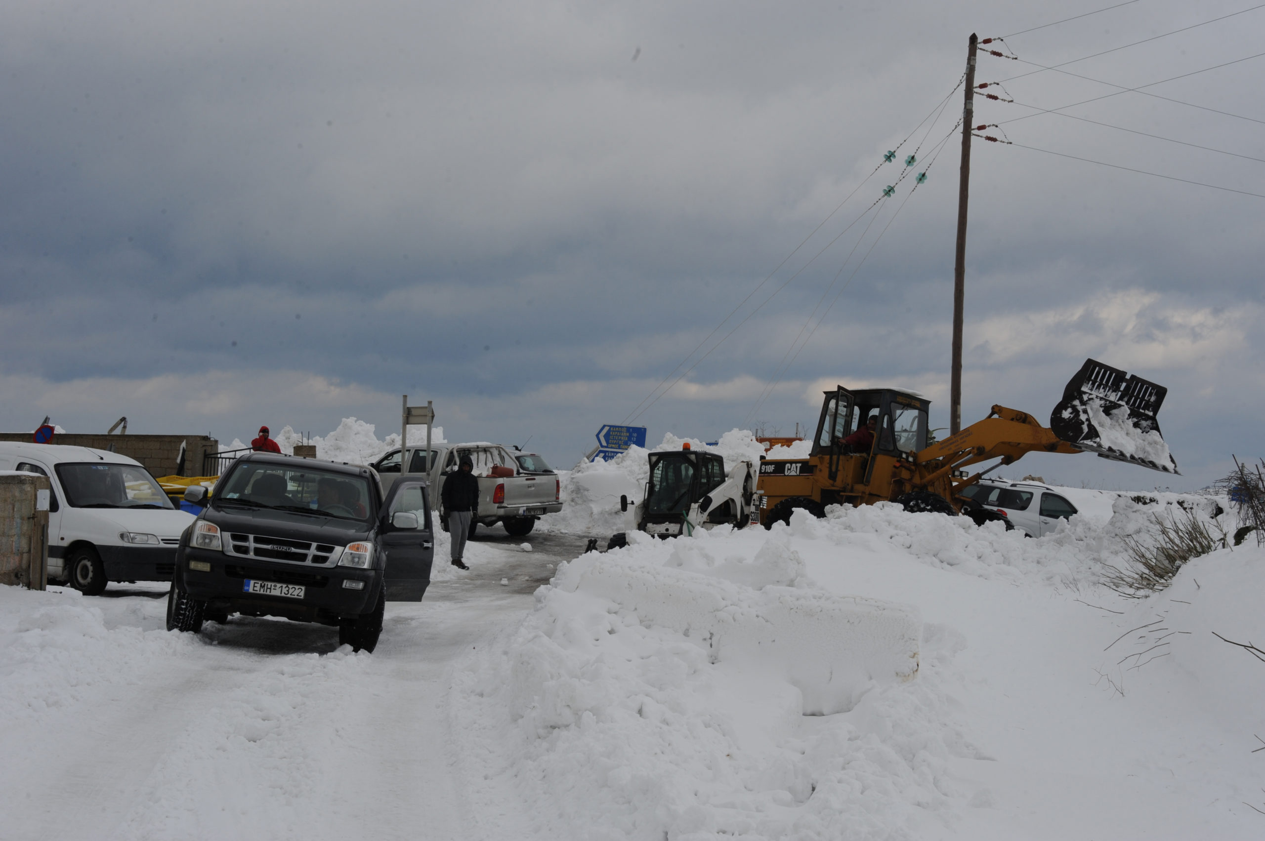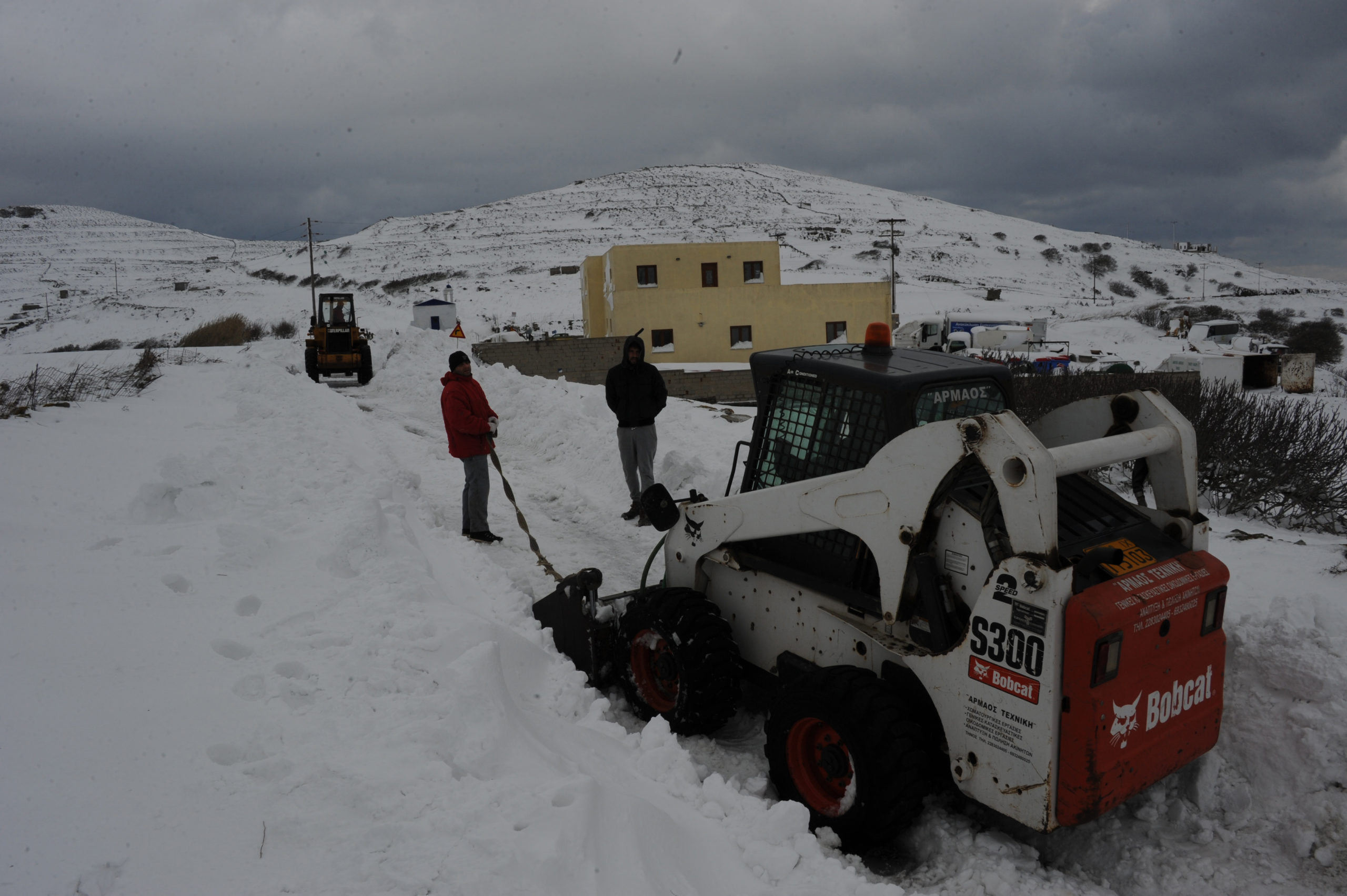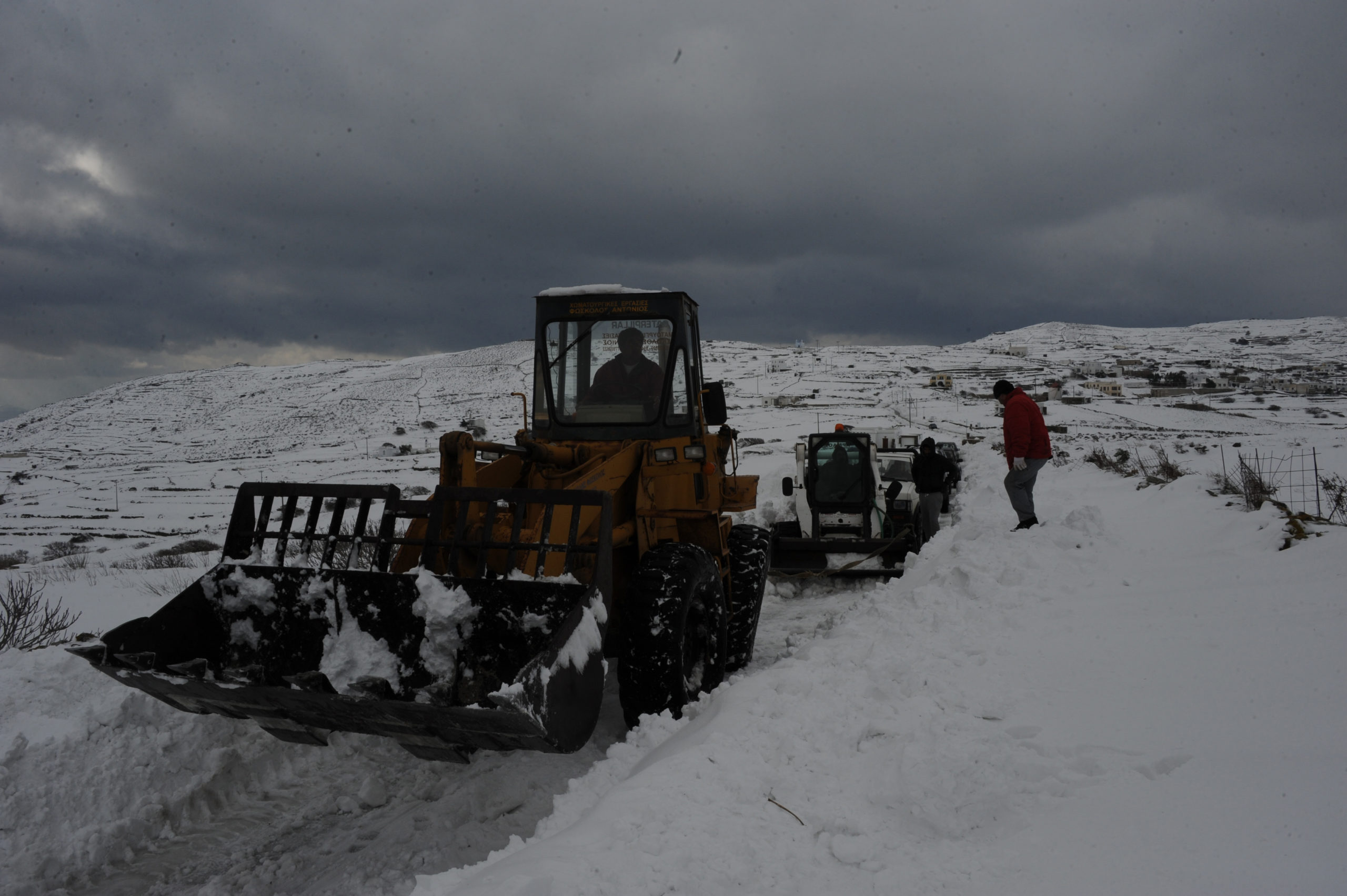 Στις φωτογραφίες φαίνεται το μέγεθος της έντονης χιονόπτωσης που σημειώθηκε, ενώ απεικονίζονται και τα μηχανήματα του δήμου που προσπαθούσαν να κρατήσουν ανοιχτούς τους δρόμους του επαρχιακού δικτύου της Τήνου.