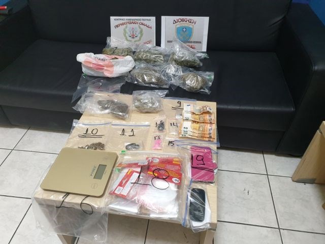 δέκα (10) πλαστικές συσκευασίες περιέχουσες ναρκωτική ουσία, πιθανόν φυτικά αποσπάσματα ακατέργαστης κάνναβης συνολικού μικτού βάρους 1209,1 γραμμαρίων,μία (01) πλαστική συσκευασία περιέχουσα ναρκωτική ουσία, πιθανόν κατεργασμένης κάνναβης, μικτού βάρους 13,8 γραμμαρίων,μία (01) πλαστική συσκευασία περιέχουσα ναρκωτική ουσία, πιθανόν κοκαΐνη, μικτού βάρους 4,4 γραμμαρίων,δεκαπέντε (15) χάπια χρώματος ροζ, πιθανόν «ΕΞΤΑΣΗ», μία (01) πλαστική συσκευασία περιέχουσα ναρκωτική ουσία, πιθανόν μεθαμφεταμίνη (MDMA), μικτού βάρους 6,2 γραμμαρίων,μία (01) πλαστική συσκευασία περιέχουσα ναρκωτική ουσία, πιθανόν LSD σε μορφή BLOTTER (χάρτινο εμβαπτιζόμενο σε νερό), μία (01) ζυγαριά ακριβείας,το χρηματικό ποσό των τριακοσίων πενήντα (350€) ευρώ καιδύο (02) κινητά τηλέφωνα.