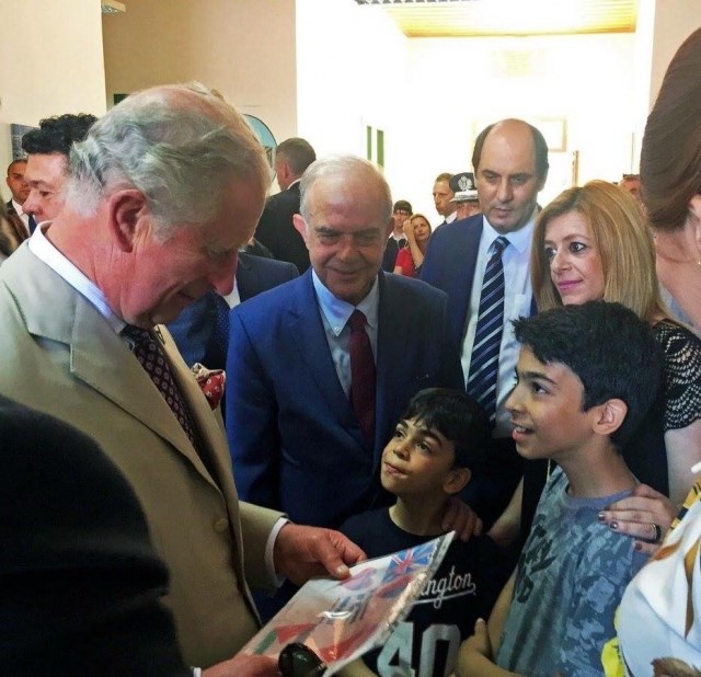 Τα δυο παιδιά πρόσφυγες από την Παλαιστίνη, 11 και 9 ετών, ύστερα από μια μεγάλη και δύσκολη περιπλάνηση στη Συρία, την Ιορδανία και την Τουρκία, φιλοξενούνται εδώ και μερικούς μήνες, μαζί με την οικογένειά τους στο Ηράκλειο. Τα παιδιά εξέφρασαν στον Πρίγκιπα Κάρολο την ικανοποίησή τους για τις συνθήκες ζωής στον τόπο μας, ενώ του προσέφεραν και μια ζωγραφιά με τις σημαίες της Παλαιστίνης, της Ελλάδας και της Μεγάλης Βρετανίας.