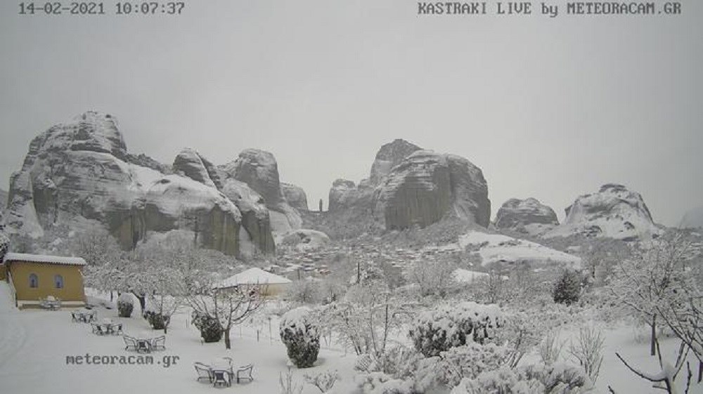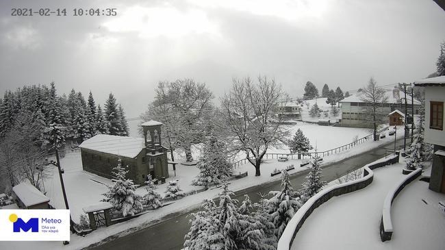 Παράλληλα, πυκνές χιονοπτώσεις σημειώθηκαν στα βόρεια και κεντρικά δίνοντας όμορφες εικόνες, οι οποίες εμφανίζονται στο δίκτυο μετεωρολογικών καμερών του Εθνικού Αστεροσκοπείου Αθηνών / Meteo.gr. Δείτε πρωινές εικόνες από το Μέτσοβο Ιωαννίνων, το Καστράκι Μετεώρων και τον Άγιο Παύλο (Κουτσούφλιανη).
