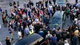 Εκεί, είχε συγκεντρωθεί κόσμος που φώναζε “Αθάνατος”, ενώ όταν ξεκίνησε η πομπή για τη μεταφορά της σορού στο κέντρο της πόλης των Χανίων, οι συγκεντρωμένοι ξέσπασαν σε χειροκρότημα.