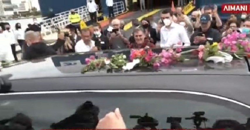 Πολύ συγκινητικές στιγμές εκτυλίχθηκαν στο λιμάνι του Πειραιά όπου εκατοντάδες πολίτες βρέθηκαν στην πύλη Ε2 για να υποδεχθούν το όχημα που μεταφέρει το φέρετρο του Μίκη Θεοδωράκη στα Χανιά.
