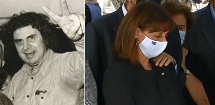 Δίπλα στο μνήμα του Μίκη Θεοδωράκη, η Πρόεδρος της Δημοκρατίας λύγισε, ενώ ήταν στην αγκαλιά του συντρόφου της, Παύλου Κοτσώνη.