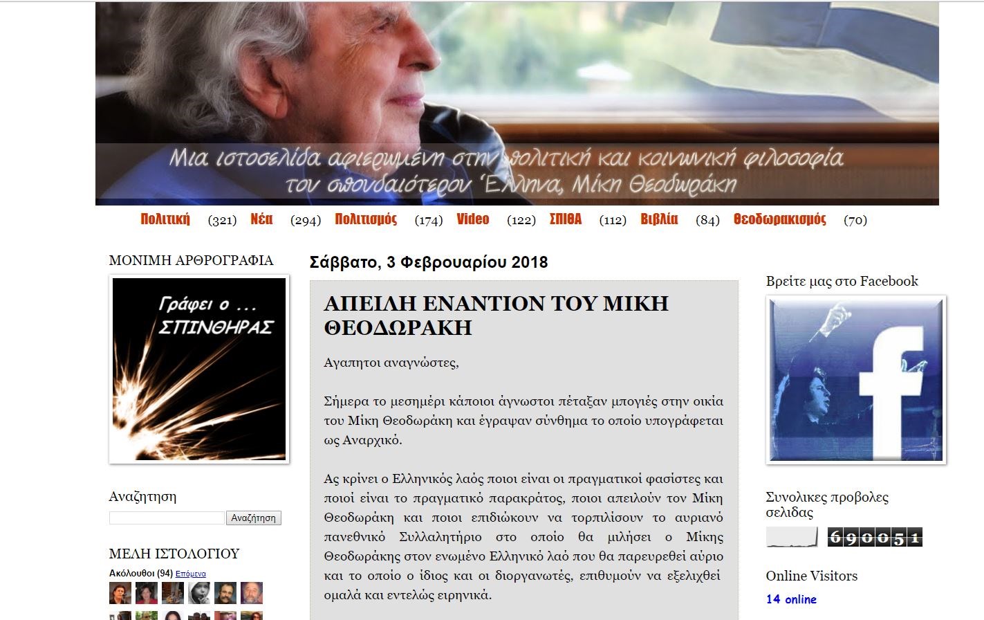 Κύκλοι προσκείμενοι στον μουσουργό κάνουν χαρακτηριστικά λόγο στο ιστολόγιό του για «σκοτεινούς κύκλους που πολεμούν τον Μίκη Θεοδωράκη από το 1940 και θα καταλήξουν στον σκουπιδοτενεκέ της ιστορίας» και για «ποντίκια που όταν έρχεται η γάτα εξαφανίζονται».