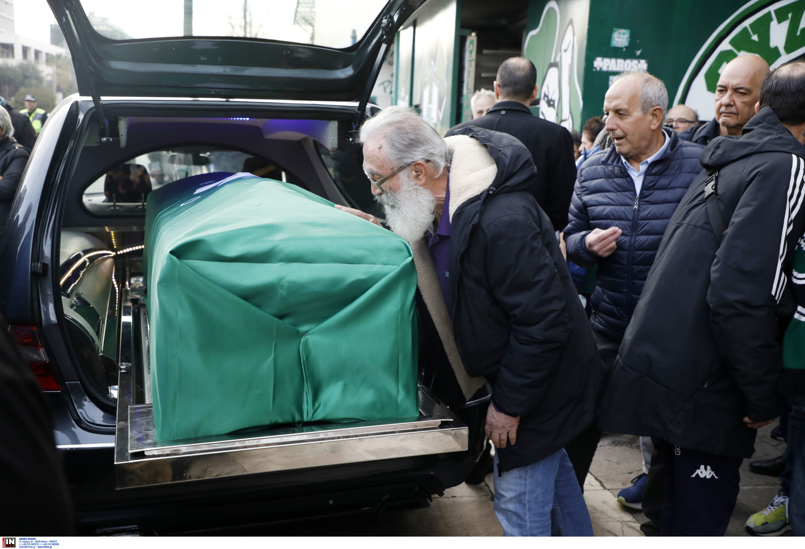 Πριν από λίγο η σορός του θρυλικού «Στρατηγού» έφτασε στο γήπεδο, όπου από πολύ νωρίς έχει συγκεντρωθεί κόσμος. Οι συγκεντρωμένοι άρχισαν να χειροκροτούν και να φωνάζουν «Αθάνατος».