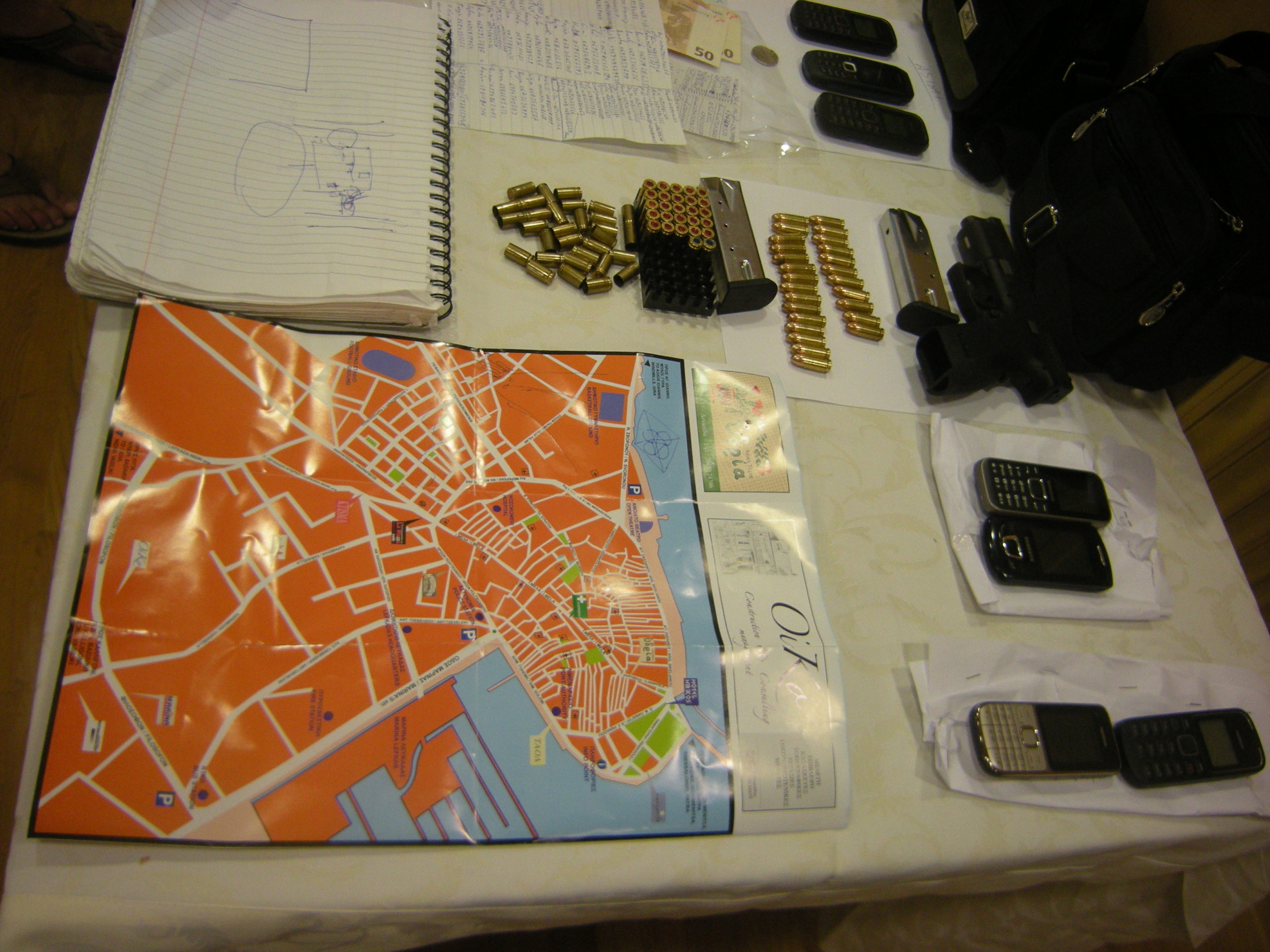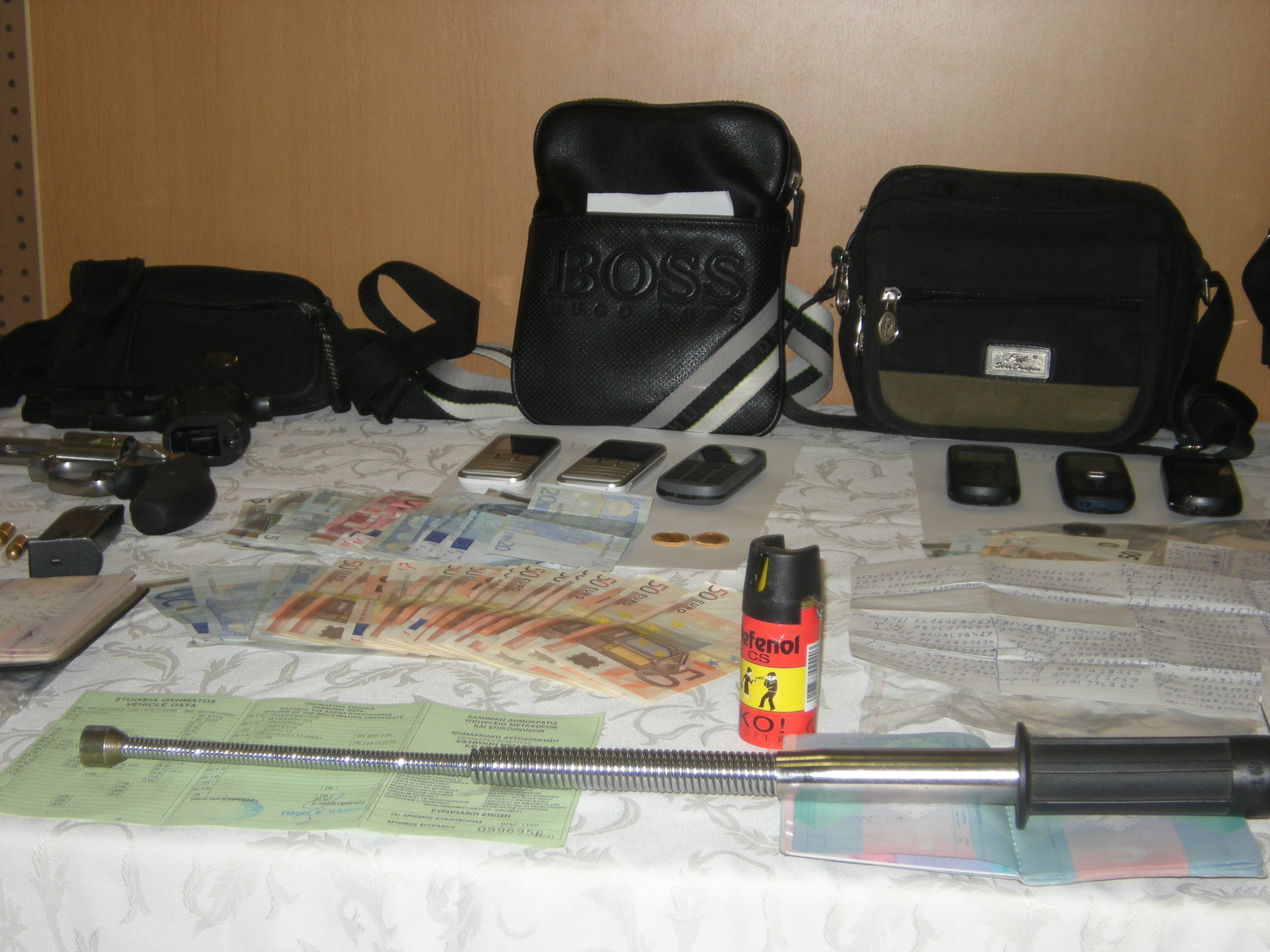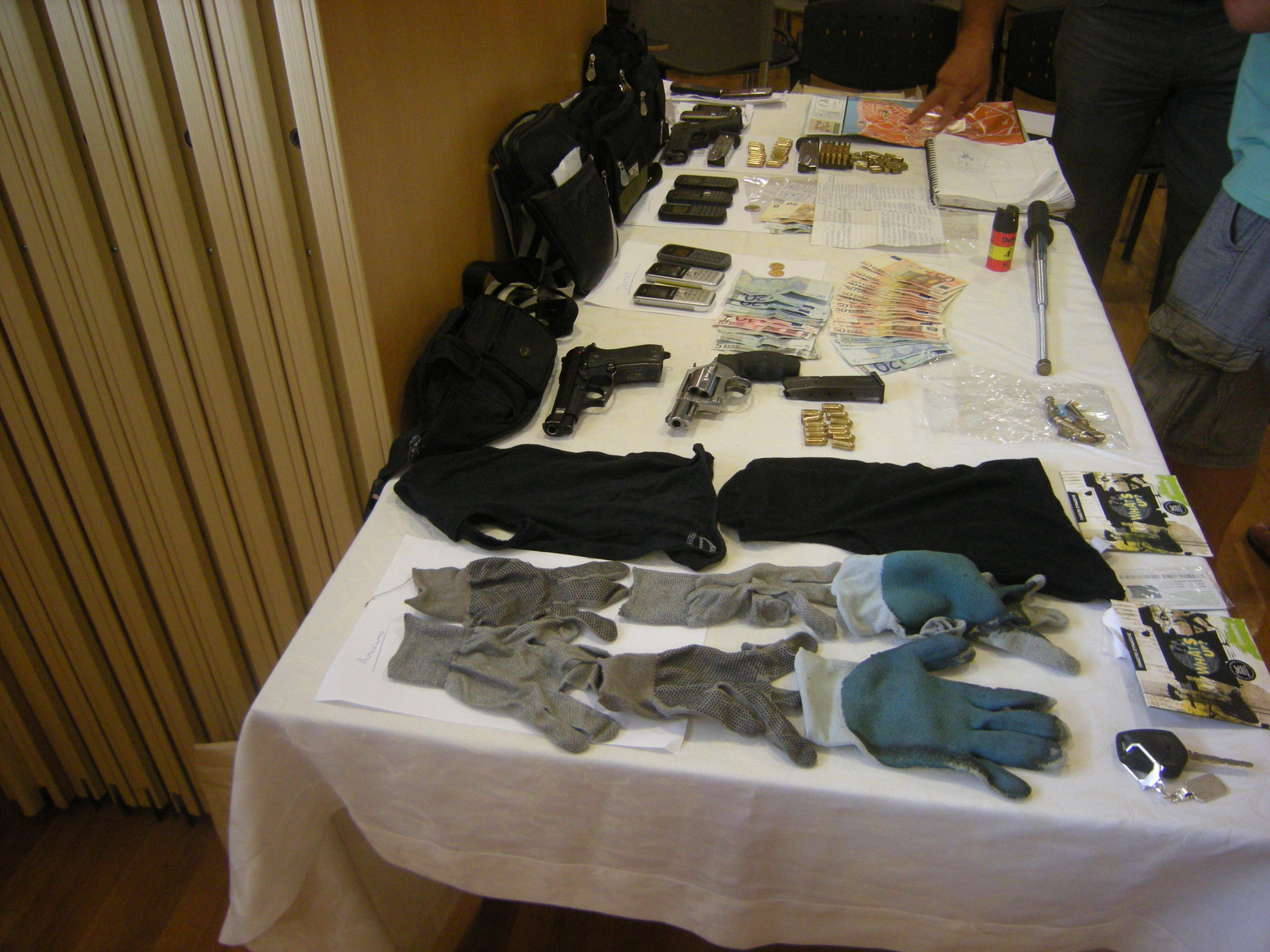 Πλήρως εξοπλισμένη ήταν η τετραμελής σπείρα που ετοιμαζόταν να ληστέψει Τράπεζες στην Λευκάδα.Οι αστυνομικοί που τους συνέλαβαν στο πλαίσιο ελέγχου κατέσχεσαν και ένα μίνι φορητό οπλαστάσιο που έκρυβαν στο πορτ -μπαγκάζΜάγκνουμ, Μπερέτα και HS, πτυσσόμενο γκλομπ, σπρέι πιπεριού, πολλά κινητά, μάσκες full-face, γάντια, χάρτες ήταν στο πίσω μέρος του αυτοκινήτου.