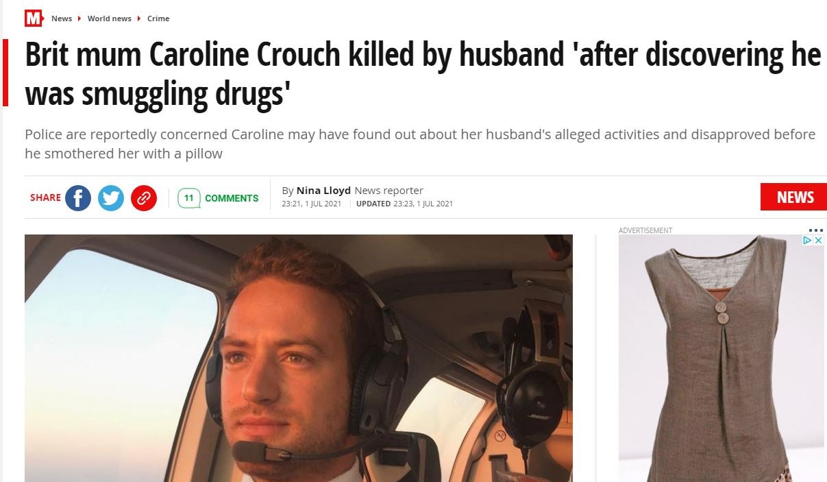 Μάλιστα, το δημοσίευμα επικαλείται την αστυνομία γράφοντας χαρακτηριστικά ότι “η ελληνική αστυνομία φοβάται ότι η Καρολάιν δολοφονήθηκε από τον σύζυγό της, αφού ανακάλυψε ότι ο 33χρονος πιλότος χρησιμοποιούσε το ελικόπτερο για να μεταφέρει ποσότητες ναρκωτικών πανίσχυρων καρτέλ. Προσθέτει μεταξύ άλλων ότι οι έρευνες στρέφονται και στα οικονομικά του ζευγαριού και στο πώς κατάφερναν να ζουν μια τόσο πλουσιοπάροχη ζωή.
