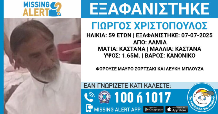 Την κινητοποίηση των αρχών έχει προκαλέσει η υπόθεση εξαφάνισης ενός 59χρονου, στη Λαμία.