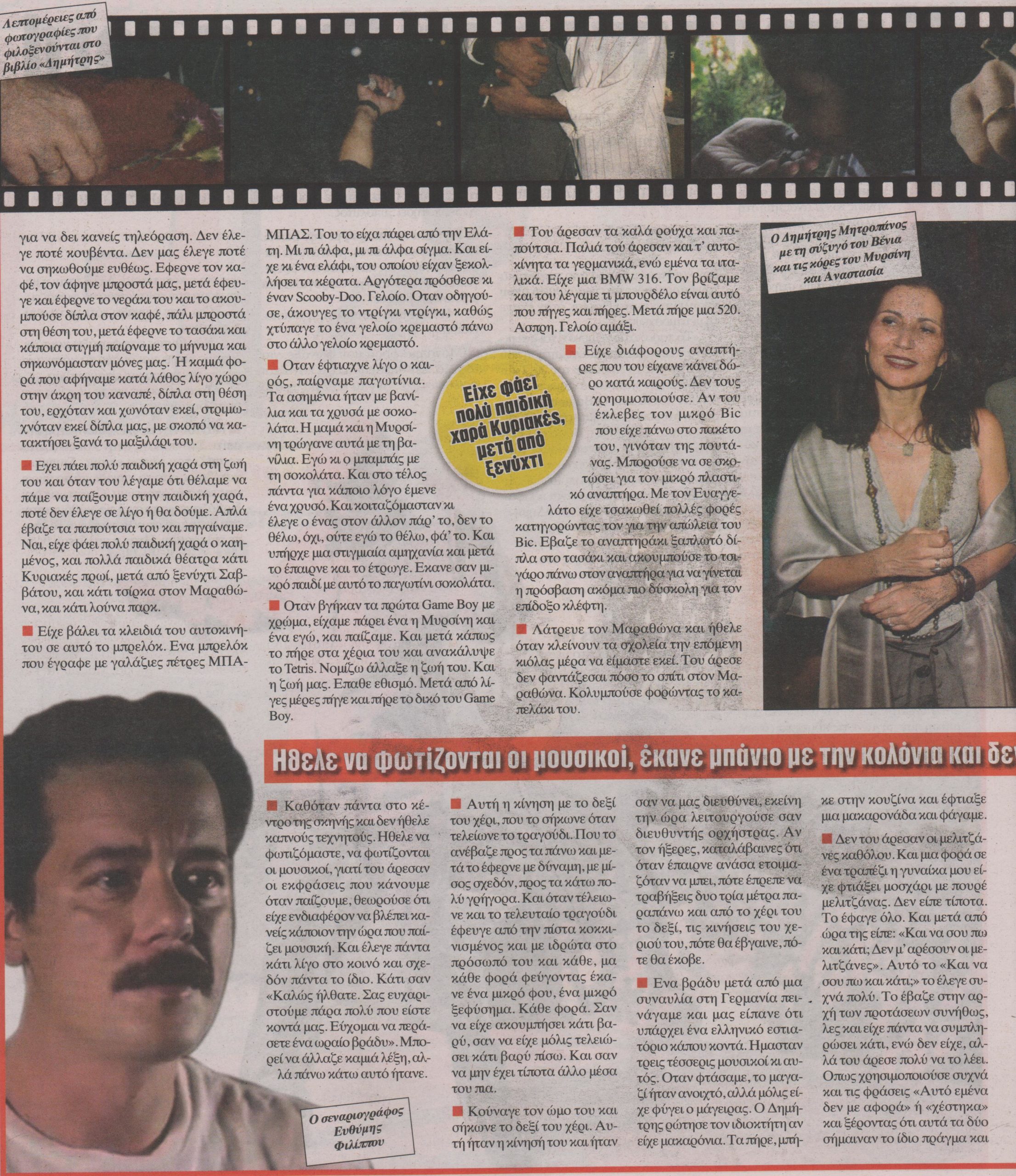 Ιστορίες όχι για τον Μητροπάνο αλλά για τον «Δημήτρη». Έτσι λέγεται το βιβλίο που έγραψε ο Ευθύμης Φιλίππου για λογαριασμό της δισκογραφικής εταιρείας Minos EMI και κυκλοφορεί από τον εκδοτικό οίκο MNP.
