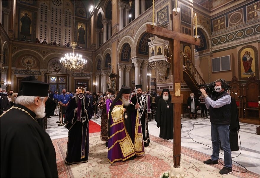 Χοροστατούντος του Αρχιεπισκόπου Αθηνών και πάσης Ελλάδος Ιερωνύμου και σε κλίμα κατάνυξης τελέστηκε στη Μητρόπολη Αθηνών η Ακολουθία των Αγίων και Αχράντων Παθών του Κυρίου. Τον Προκαθήμενο της Ελλαδικής Εκκλησίας πλαισίωναν ο επίσκοπος Ωρεών Θεόφιλος, αρχιγραμματέας της Ιεράς Συνόδου, ο επίσκοπος Ρωγών Θεόφιλος και οι ιερείς του Καθεδρικού Ιερού Ναού.