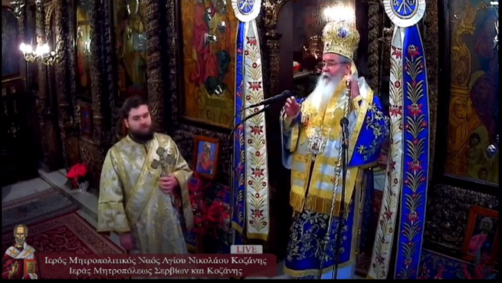 Ο Μητροπολίτης Σερβίων και Κοζάνης Παύλος, μετά τον αγιασμό, μιλούσε εντός του ναού για το γηροκομείο, όπου βρίσκονται αυτή τη στιγμή 80 ηλικιωμένοι.