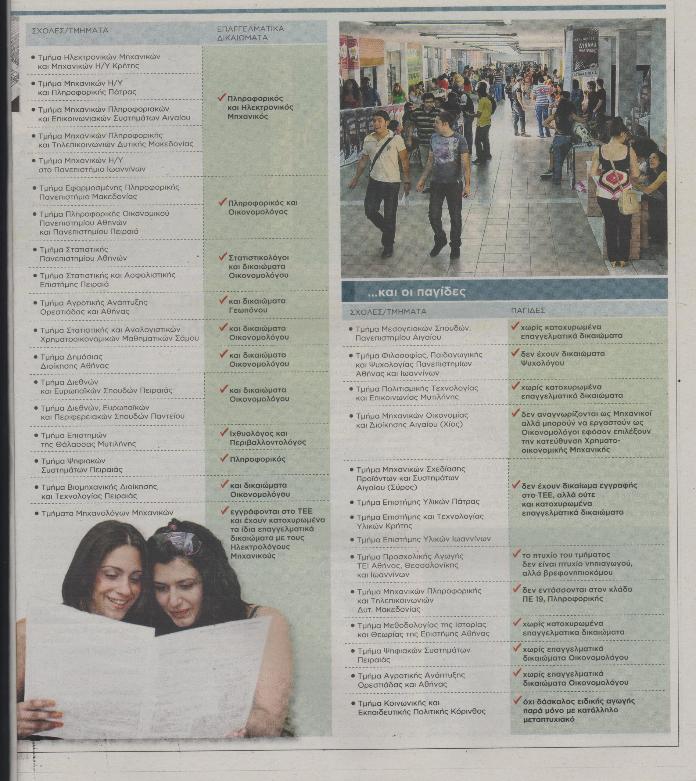 «Αρκετές από τις σχολές του μηχανογραφικού δελτίου δεν επιλέγονται από τους υποψηφίους, διότι η ονομασία τους δεν δίνει σαφή εικόνα για το αντικείμενο ενασχόλησης των αποφοίτων της.