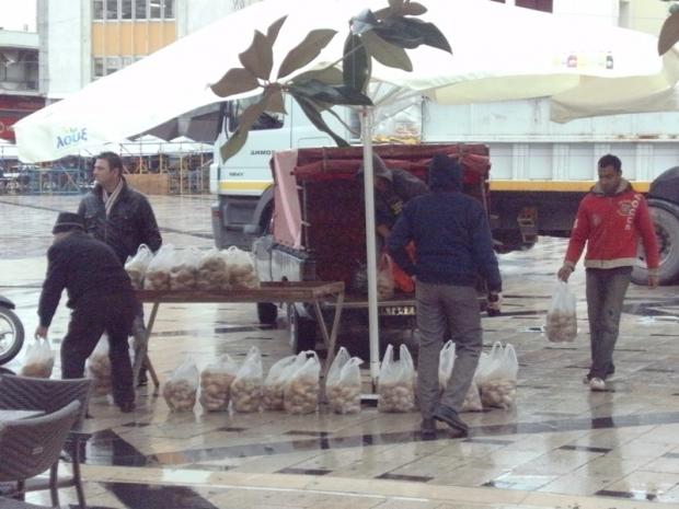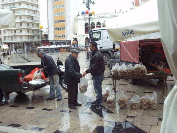 Δωρεάν πατάτες και αυγά μοιράζουν από το πρωί οι αγρότες στην πλατεία Γεωργίου στην Πάτρα, που διαμαρτύρονται για τις χαμηλές τιμές στις οποίες διαθέτουν τα προϊόντα τους.