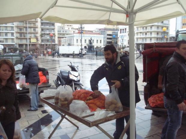 Δωρεάν πατάτες και αυγά μοιράζουν από το πρωί οι αγρότες στην πλατεία Γεωργίου στην Πάτρα, που διαμαρτύρονται για τις χαμηλές τιμές στις οποίες διαθέτουν τα προϊόντα τους.