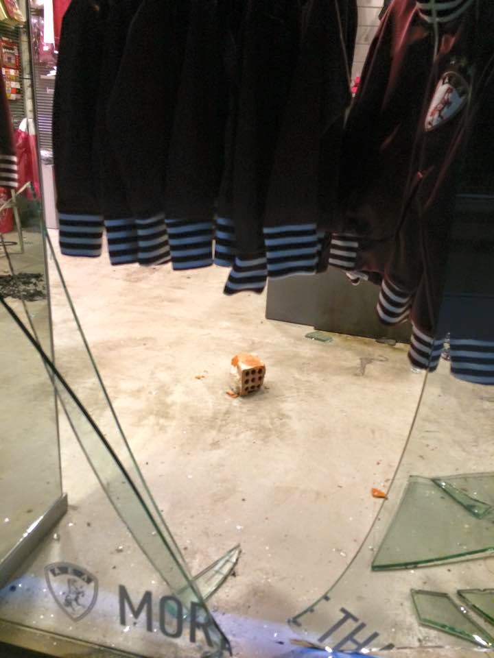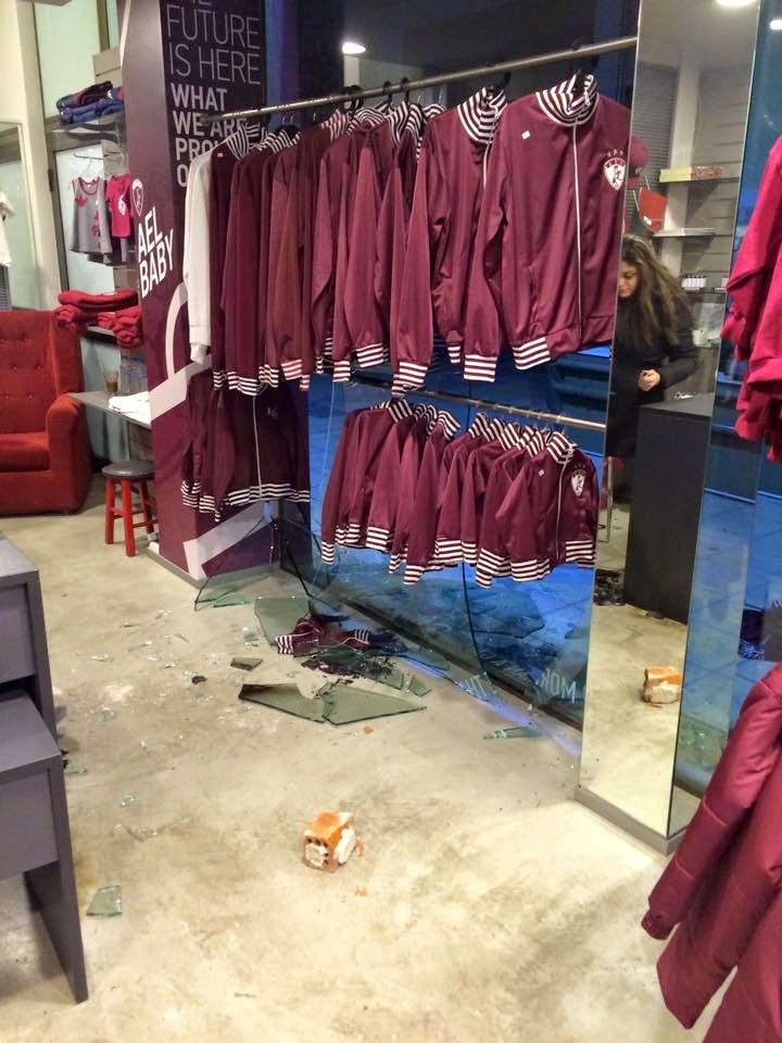 Λίγες ώρες πριν την έναρξη του αγώνα ΑΕΛ-Ολυμπιακός Βόλου, ένα περίεργο περιστατικό πραγματοποιήθηκε στη Λάρισα και, συγκεκριμένα, στο επίσημο κατάστημα της ΑΕΛ, καθώς άγνωστοι έσπασαν την τζαμαρία και πέταξαν μολότοφ στη μπουτίκ των «βυσσινί» στην οδό Μανωλάκη 9-11.