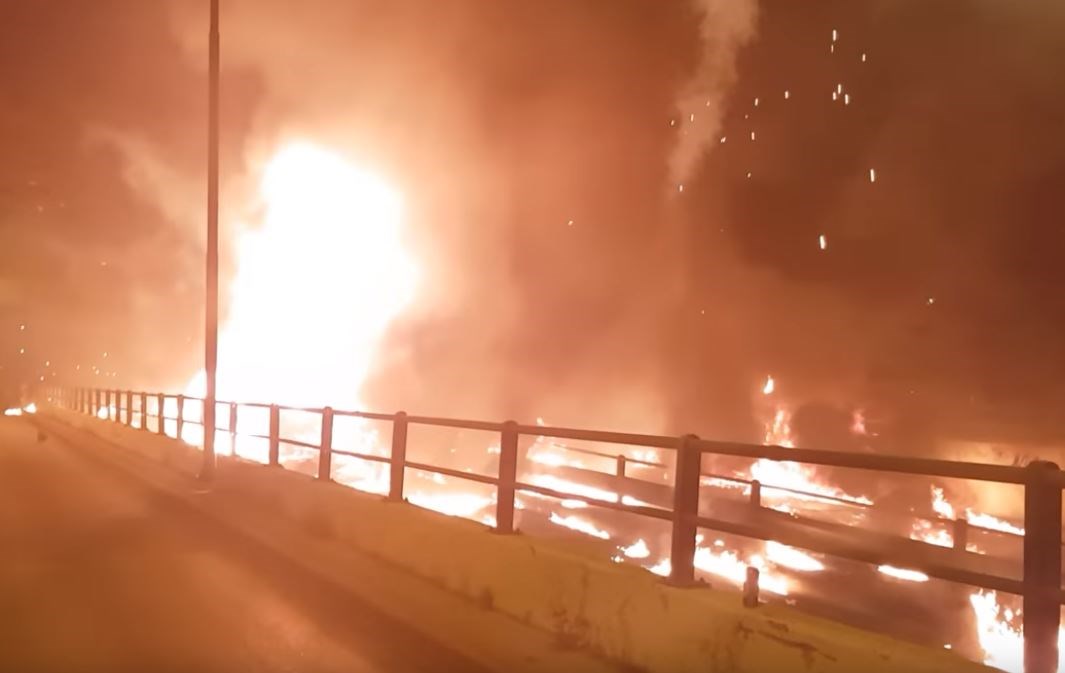 Μόλις ακουστεί το Χριστός Ανέστη, τα βεγγαλικά και οι μολότοφ πέφτουν βροχή στον κεντρικό δρόμο έξω από τον Ιερό Ναό της Αναλήψεως, μετατρέποντας τη νύχτα σε μέρα.