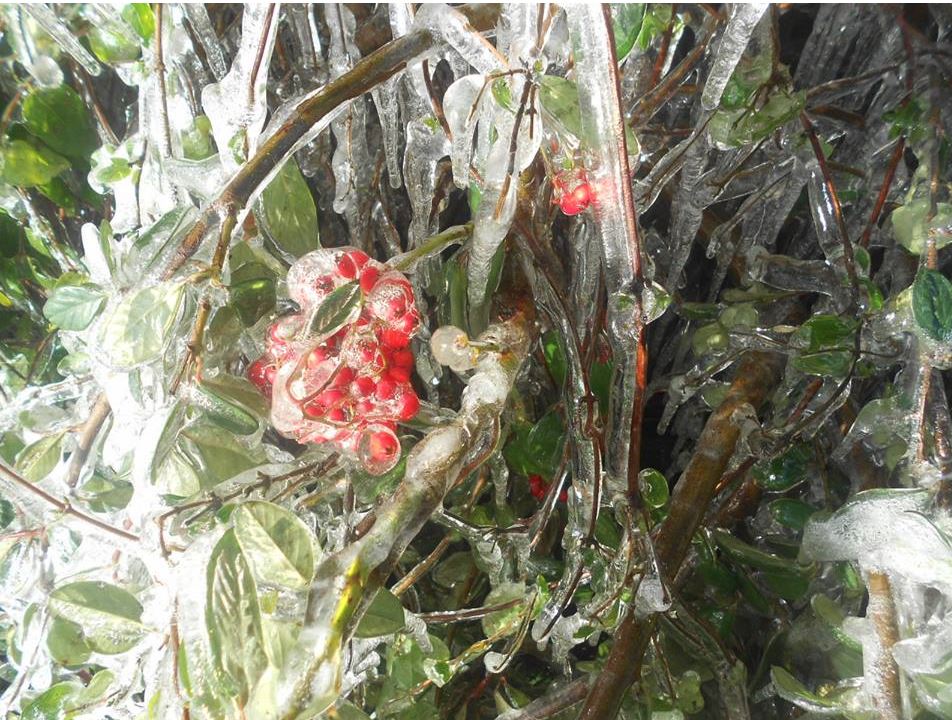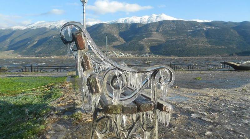 Σύμφωνα με το epiruspost.gr, μετά τη χιονόπτωση της Παραμονής οι πολύ χαμηλές θερμοκρασίες δημιούργησαν ένα στρώμα πάγου σε παγκάκια, κάγκελα, δέντρα, ακόμα και καρπούς.