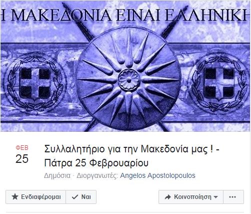 “Πολύ σύντομα, τόσο στην Πάτρα, όσο και στην Αθήνα, θα γίνει επίσημη συνέντευξη Τύπου, που θα ανακοινωθεί η συντονιστική επιτροπή για το νέο συλλαλητήριο”, τόνισε στο enikos.gr o νεαρός φοιτητής, ενώ, σύμφωνα με τη σελίδα για την εκδήλωση αυτή, το συλλαλητήριο είναι προγραμματισμένο για την Κυριακή 25 Φεβρουαρίου στην Πλατεία Γεωργίου, στην Πάτρα. Μέχρι στιγμής, στη συγκεκριμένη σελίδα, έχουν δηλώσει συμμετοχή 1.500 άτομα, ενώ έχουν εκδηλώσει ενδιαφέρον περισσότεροι από 3.500.