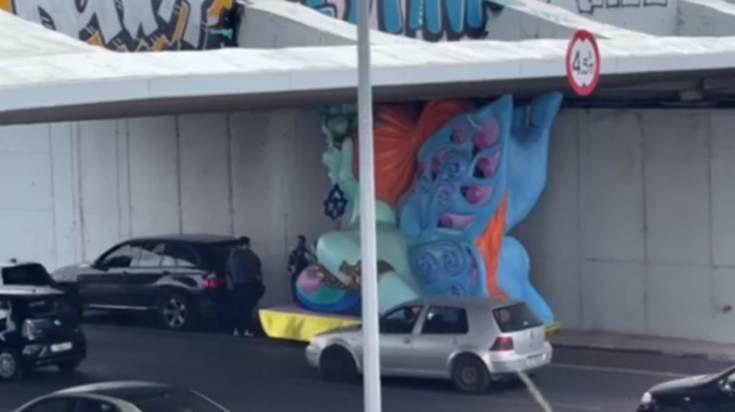 Αντιμέτωποι με ένα απρόοπτο γεγονός βρέθηκαν οι οδηγοί που κινούνταν σήμερα (15/03) στο Μοσχάτο, όταν είδαν ένα μεγάλο καρναβαλικό άρμα το οποίο ήταν φορτωμένο σε μια πλατφόρμα που έσερνε ένα αυτοκίνητο να… σφηνώνει σε μια γέφυρα.