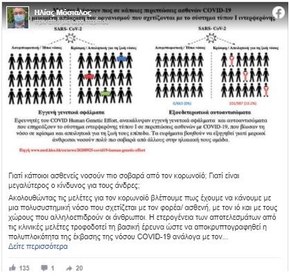 Στο ερώτημα γιατί κάποιοι νοσούν πιο σοβαρά απ’ άλλους από τον κορονοϊό απαντά μέσω ανάρτησής στον λογαριασμό του στο Facebook ο Ηλίας Μόσιαλος. Όπως αναφέρει ο καθηγητής του LSE, υπήρξε αξιολόγηση δειγμάτων εκατοντάδων ασθενών του κορονοϊού που δείχνει πως OVID-19 ασθενείς που πάσχουν πολύ σοβαρά, ενδέχεται να έχουν και κάποιες μεταλλάξεις σε γονίδια που ευθύνονται τελικά για τη μειωμένη άμυνα του οργανισμού.