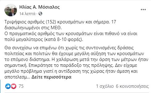 Ολόκληρη η ανάρτηση του κ. Μόσιαλου αναφέρει τα εξής:
