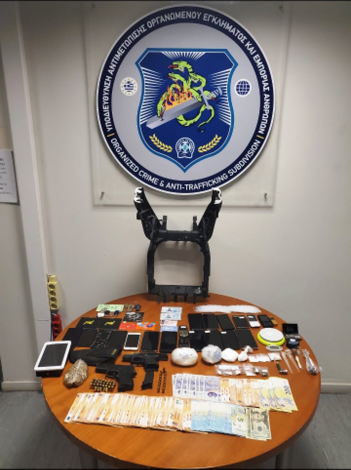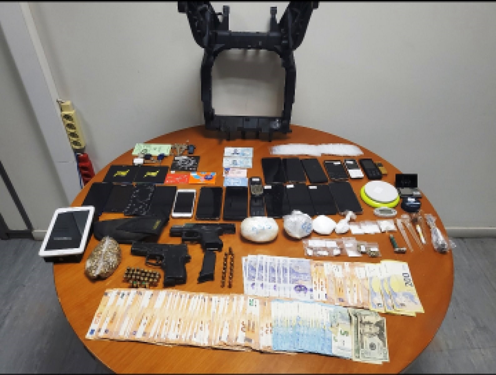 Κατά την επιχείρηση συνελήφθησαν τέσσερις αλλοδαποί, δύο 30χρονοι και δύο 43χρονοι, μέλη της οργάνωσης, ενώ κατασχέθηκαν μεταξύ άλλων 76 γραμ. κοκαΐνης, 50 γραμ. κάνναβης, μικροποσότητα κρυσταλλικής μεθαμφεταμίνης, ηλεκτρονικές ζυγαριές, πιστόλι με 15 φυσίγγια και το χρηματικό ποσό των 6.865 ευρώ.