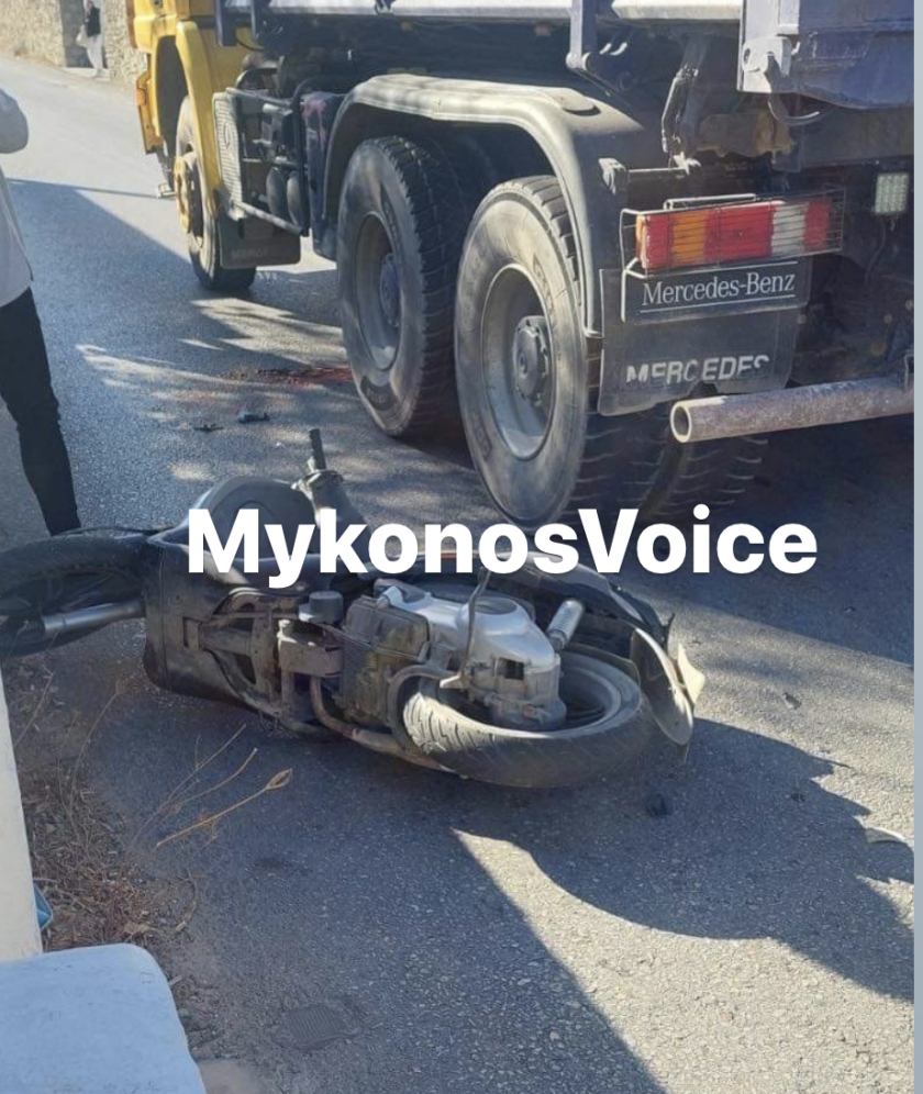 Τρομακτικό τροχαίο σημειώθηκε στη Μύκονο, στον δρόμο του Paradise. Μηχανάκι που οδηγούσε ένας 22χρονος από την Αίγυπτο, ο οποίος εργαζόταν σε κλαμπ του νησιού εξετράπη της πορείας του – προφανώς επειδή γλίστρησε – και πέρασε στο αντίθετο ρεύμα, όπου συγκρούστηκε με διερχόμενη νταλίκα.