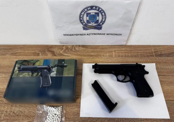 Συνελήφθη χθες Κυριακή 29 Ιουνίου στη Μύκονο, από αστυνομικούς της Υποδιεύθυνσης Αστυνομίας, ένας 45χρόνος ημεδαπός, σε βάρος του οποίου σχηματίσθηκε δικογραφία για παράνομη οπλοκατοχή και απειλή κατ’ εξακολούθηση.